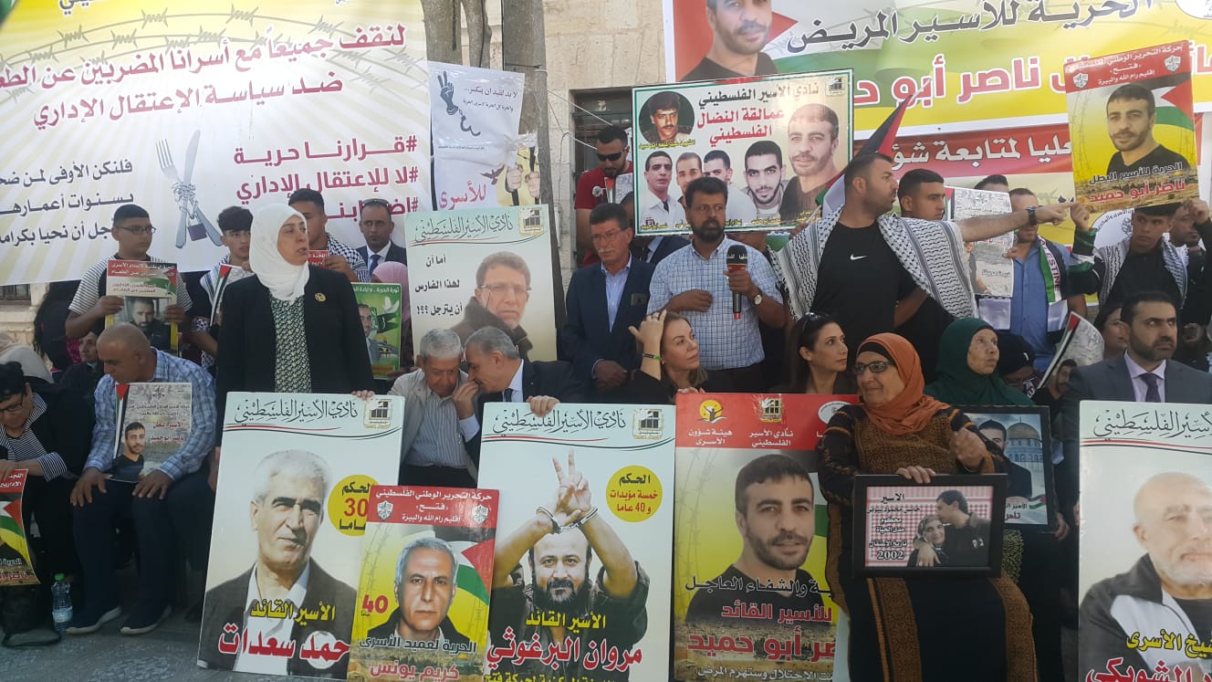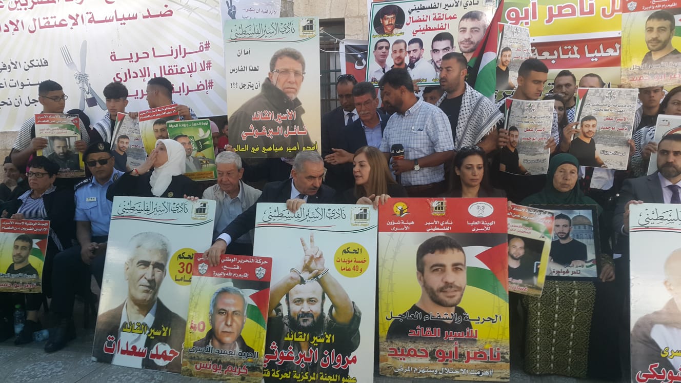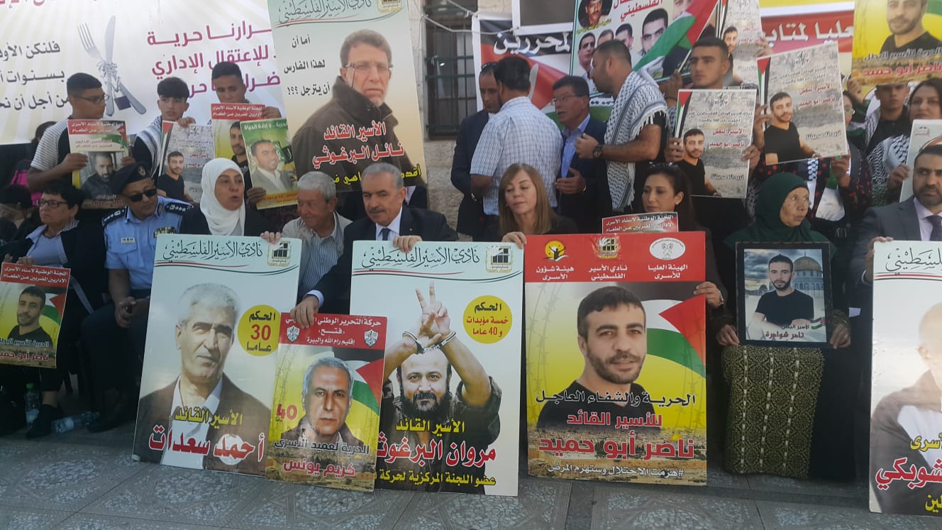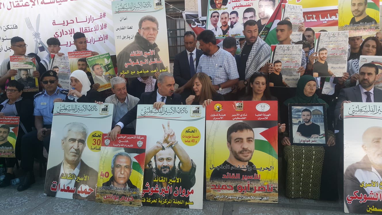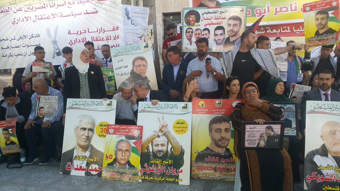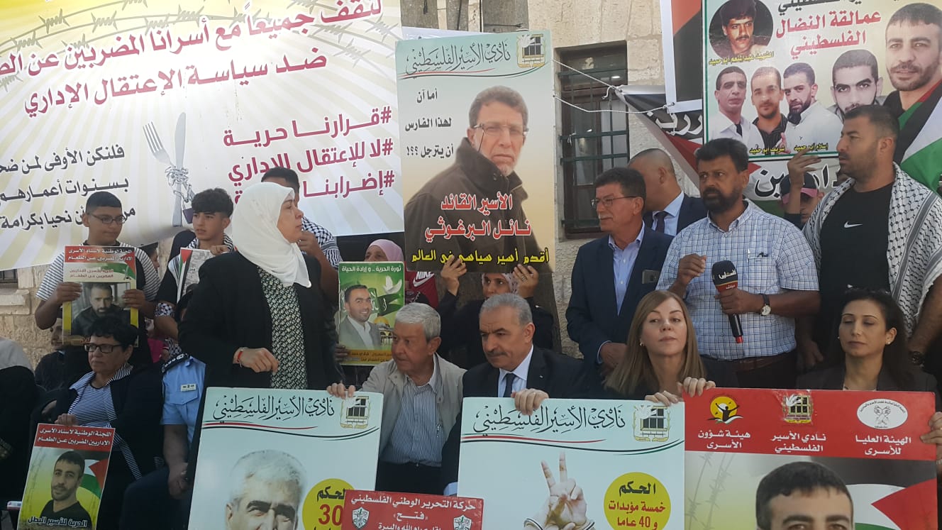 من خيمة الاعتصام في البيرة اليوم بحضور رئيس الوزراء د. محمد اشتيه، إسنادا للأسرى والمعتقلين الإداريين المضربين عن الطعام في سجون الاحتلال