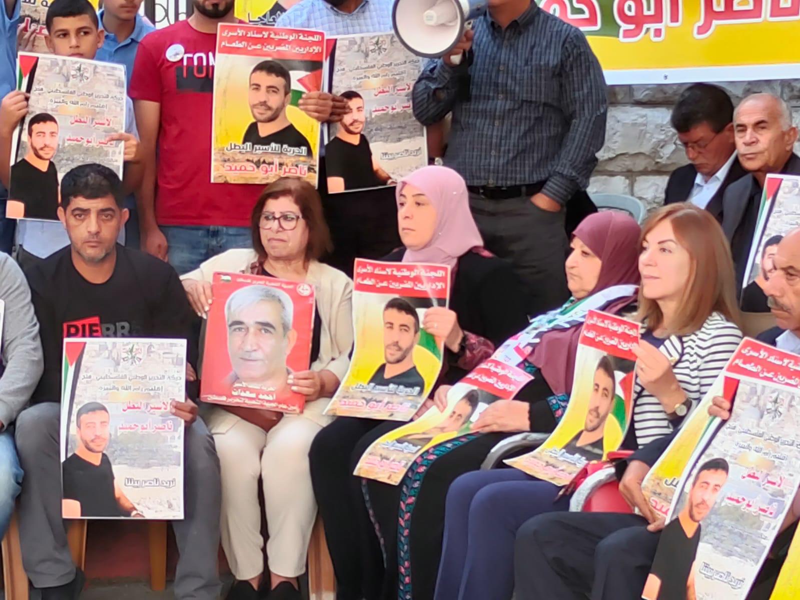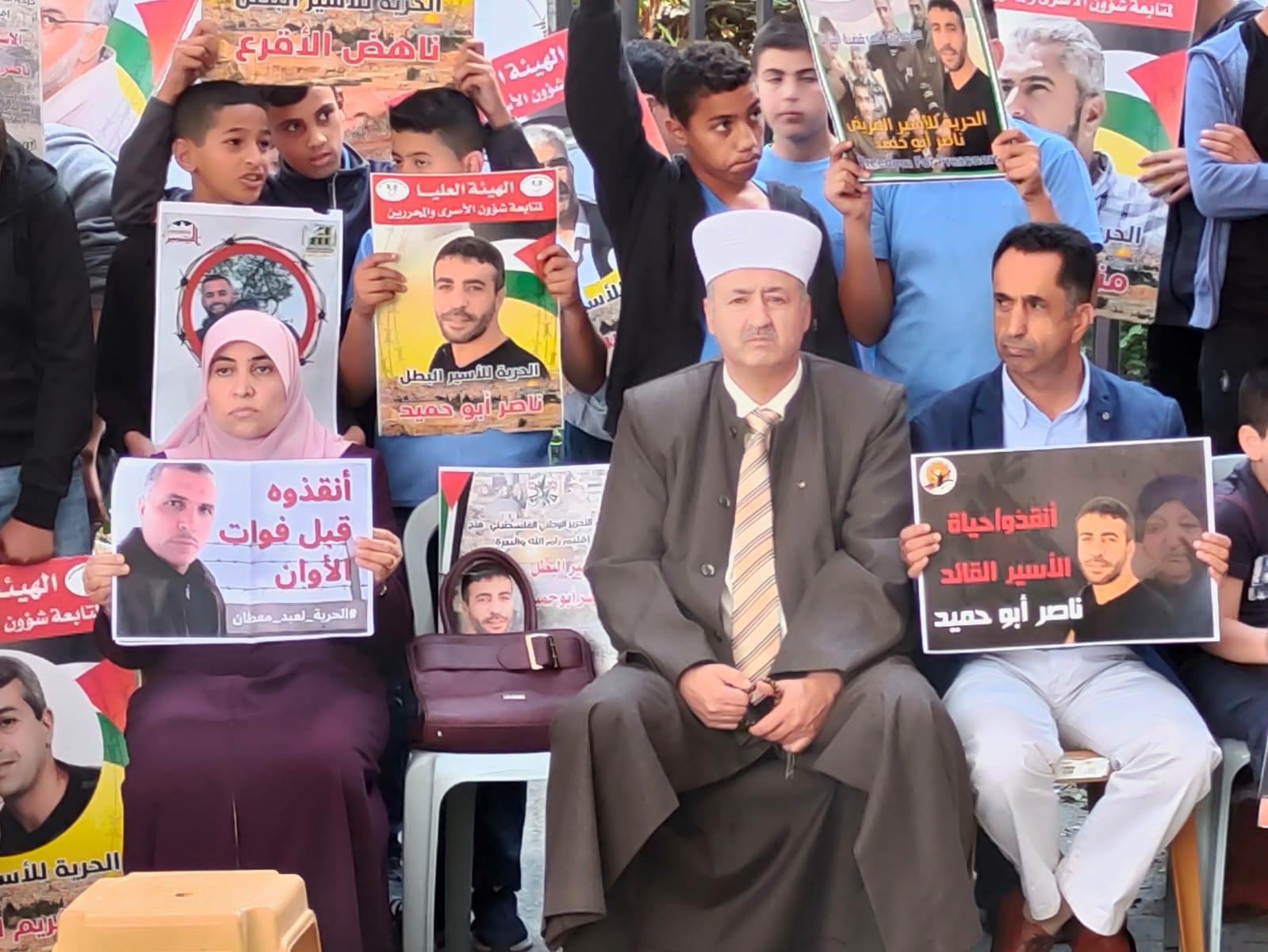 البيرة اليوم: من الاعتصام الأسبوعي لإسناد الأسير المريض بالسرطان ناصر أبو حميد والأسرى والأسيرات كافة في سجون الاحتلال اليوم من أمام مقر الصليب الأحمر.
