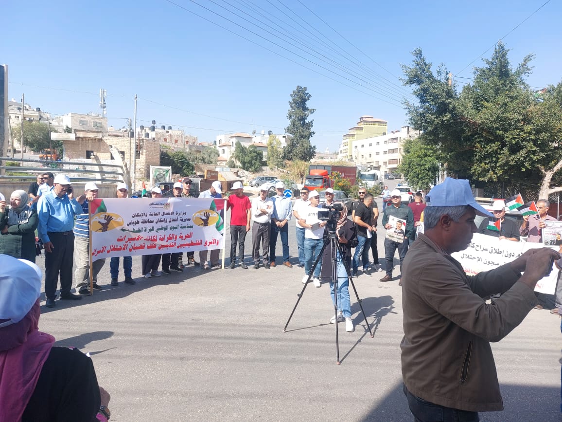 من الوقفة الداعمة والمساندة مع الاسيرات والاسرى بمناسبة اليوم الوطني للمرأة الفلسطينية والتي دعت لها وزارة شؤون المرأة بالتنسيق مع نادي الأسير الفلسطيني وهيئة شؤون الأسرى والمحررين في محافظة طوباس والاغوار الشمالية