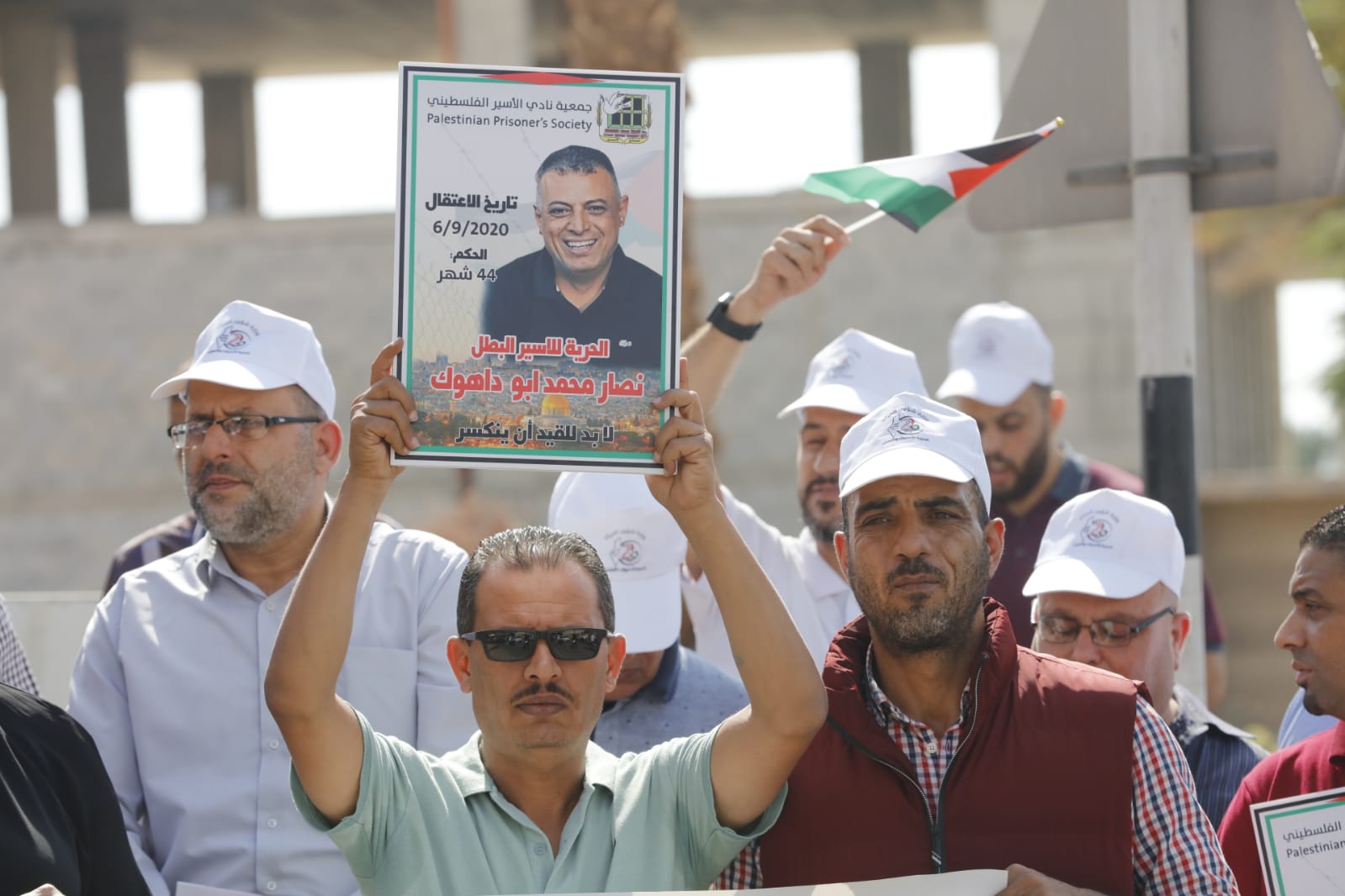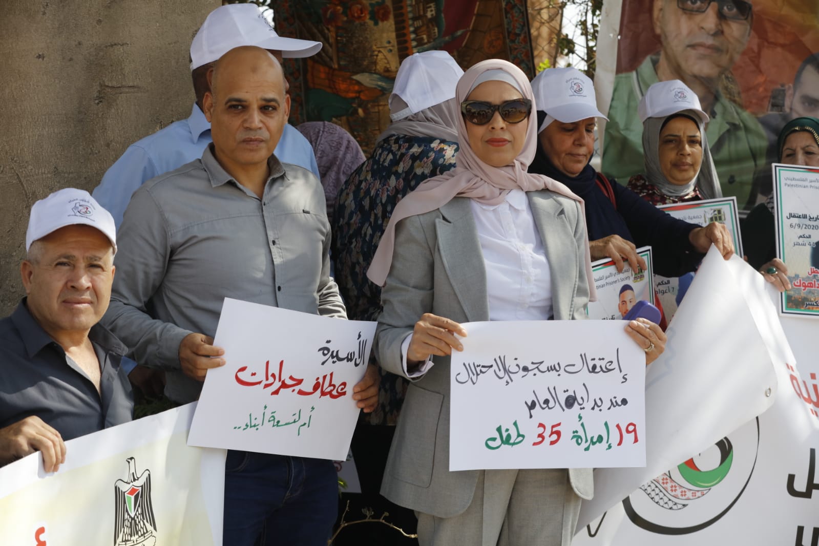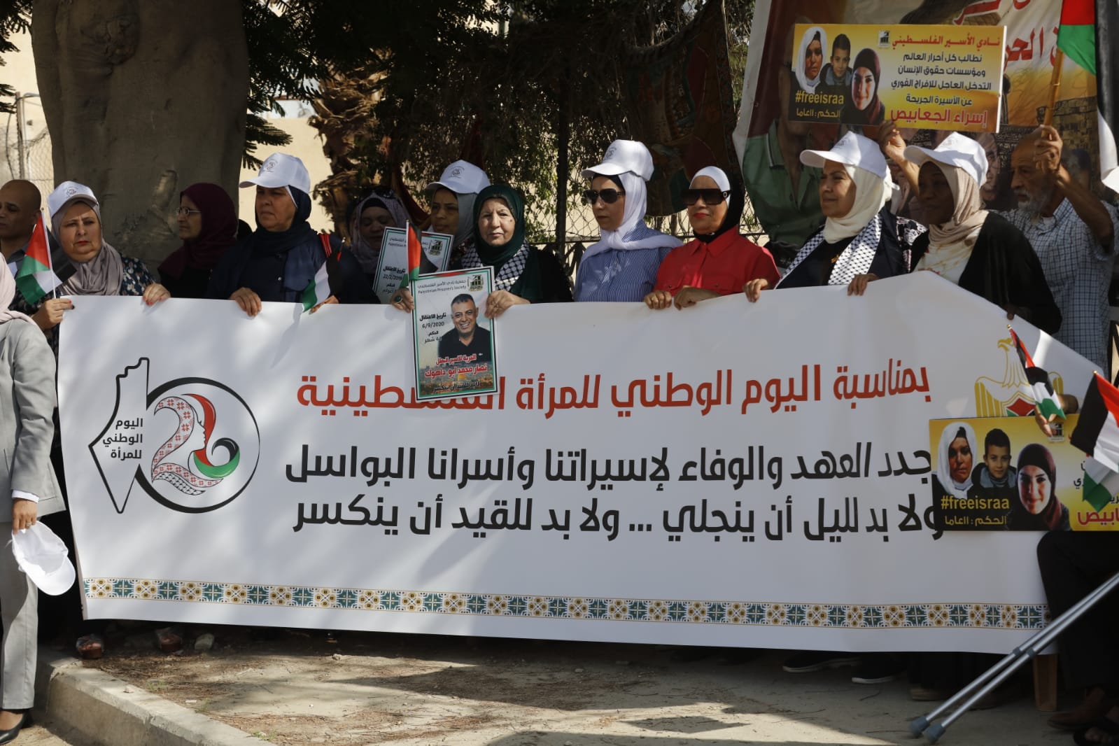 جانب من الوقفة الاسنادية للاسرى والاسيرات في سجون الاحتلال الإسرائيلي بمناسبة اليوم الوطني للمرأة الفلسطينية أمام مكتب لجنة الصليب الأحمر الدولي أريحا