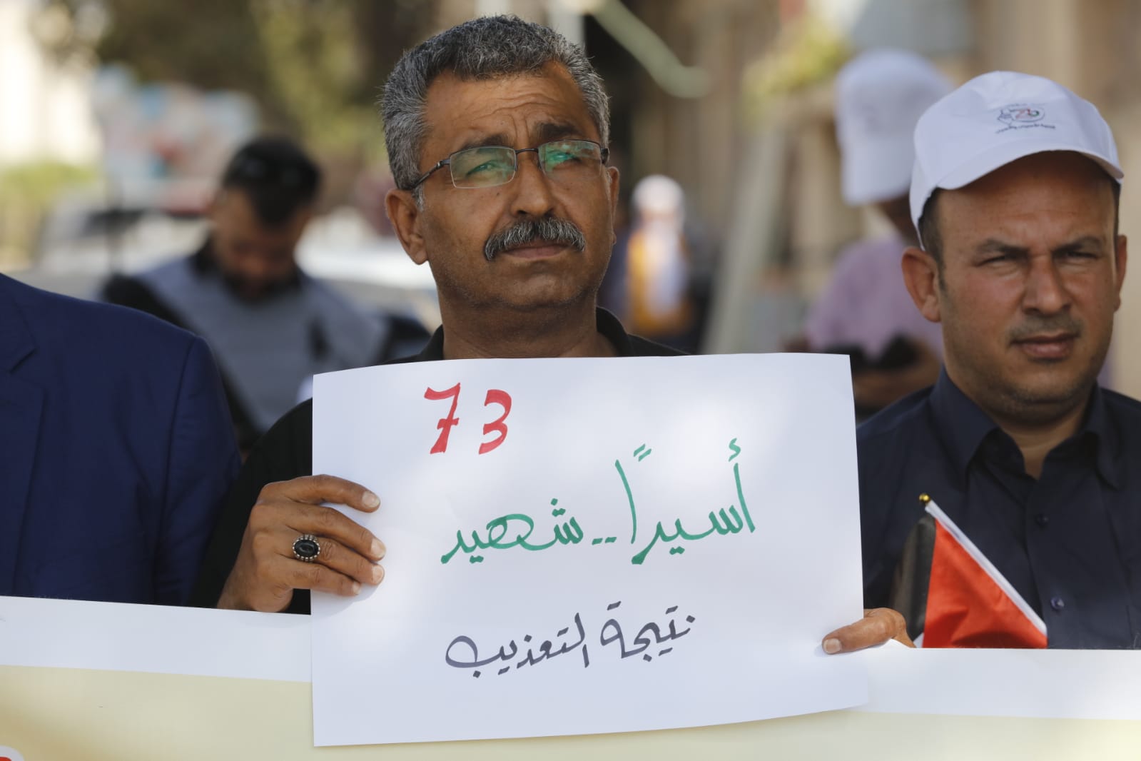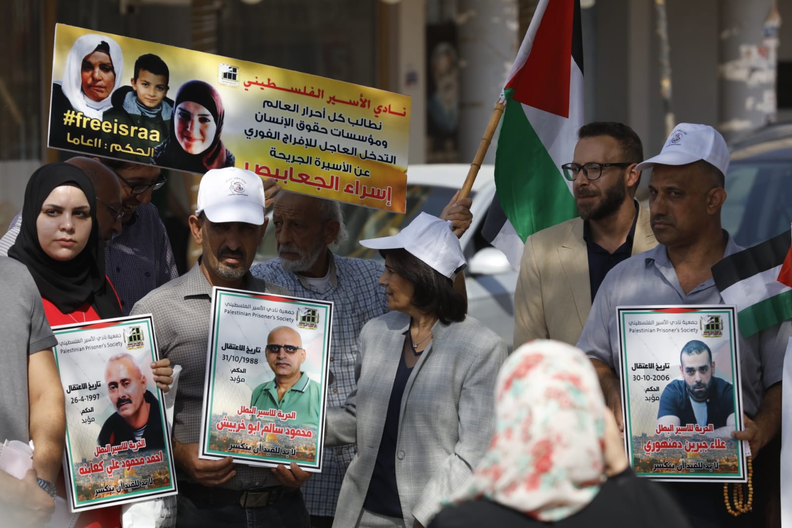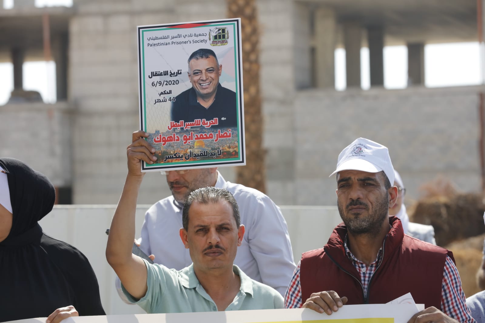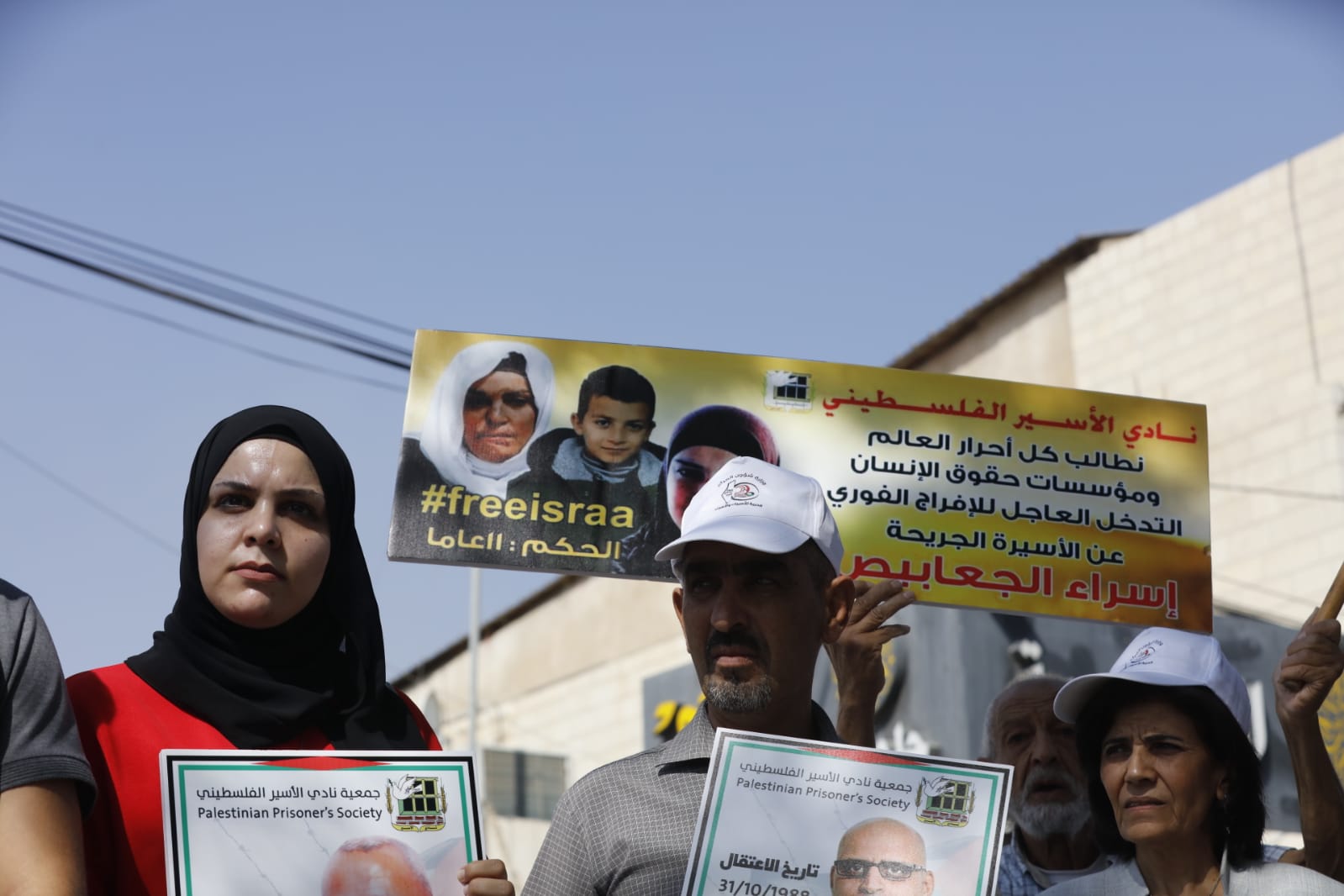 جانب من الوقفة الاسنادية للاسرى والاسيرات في سجون الاحتلال الإسرائيلي بمناسبة اليوم الوطني للمرأة الفلسطينية أمام مكتب لجنة الصليب الأحمر الدولي أريحا