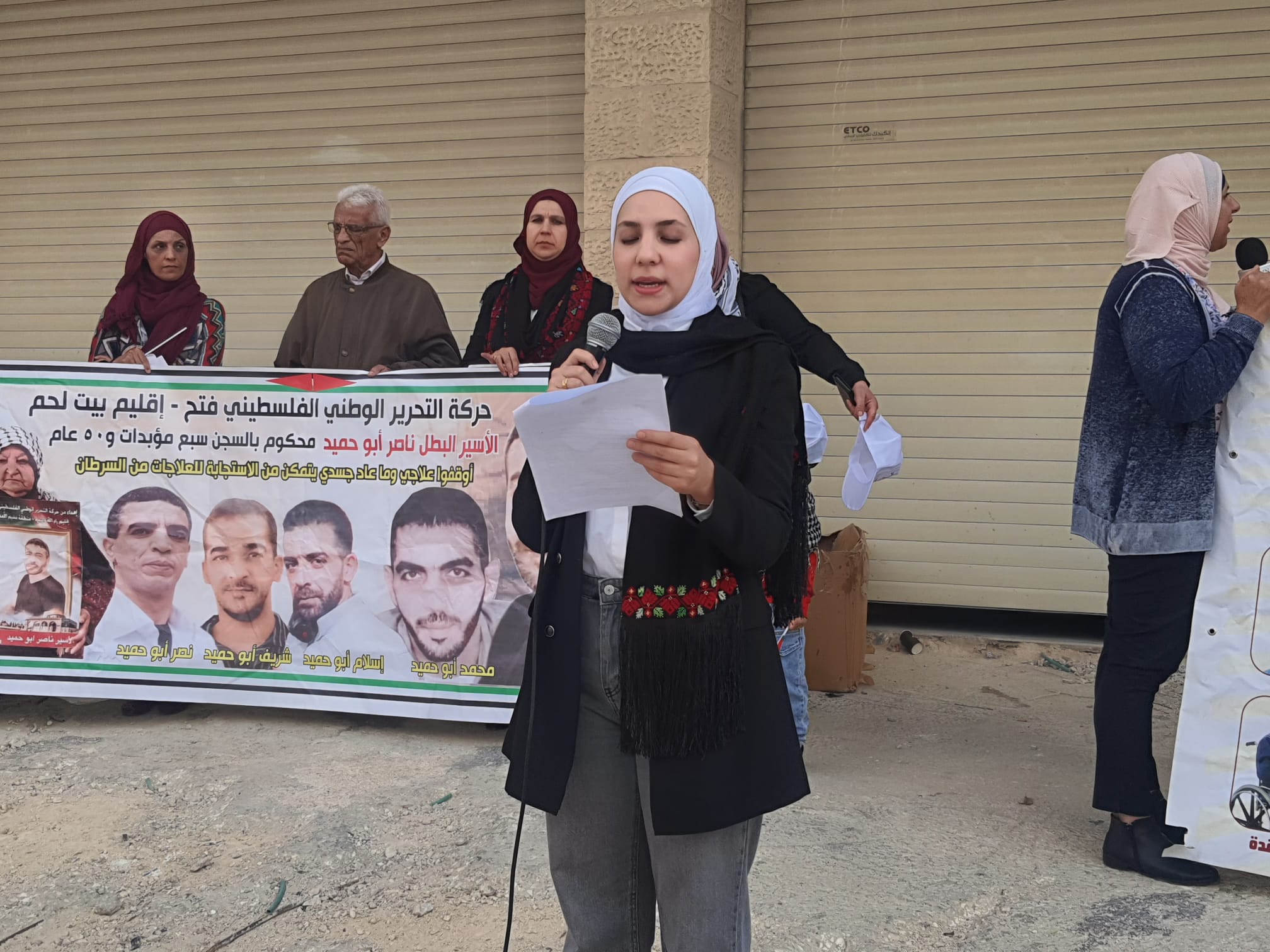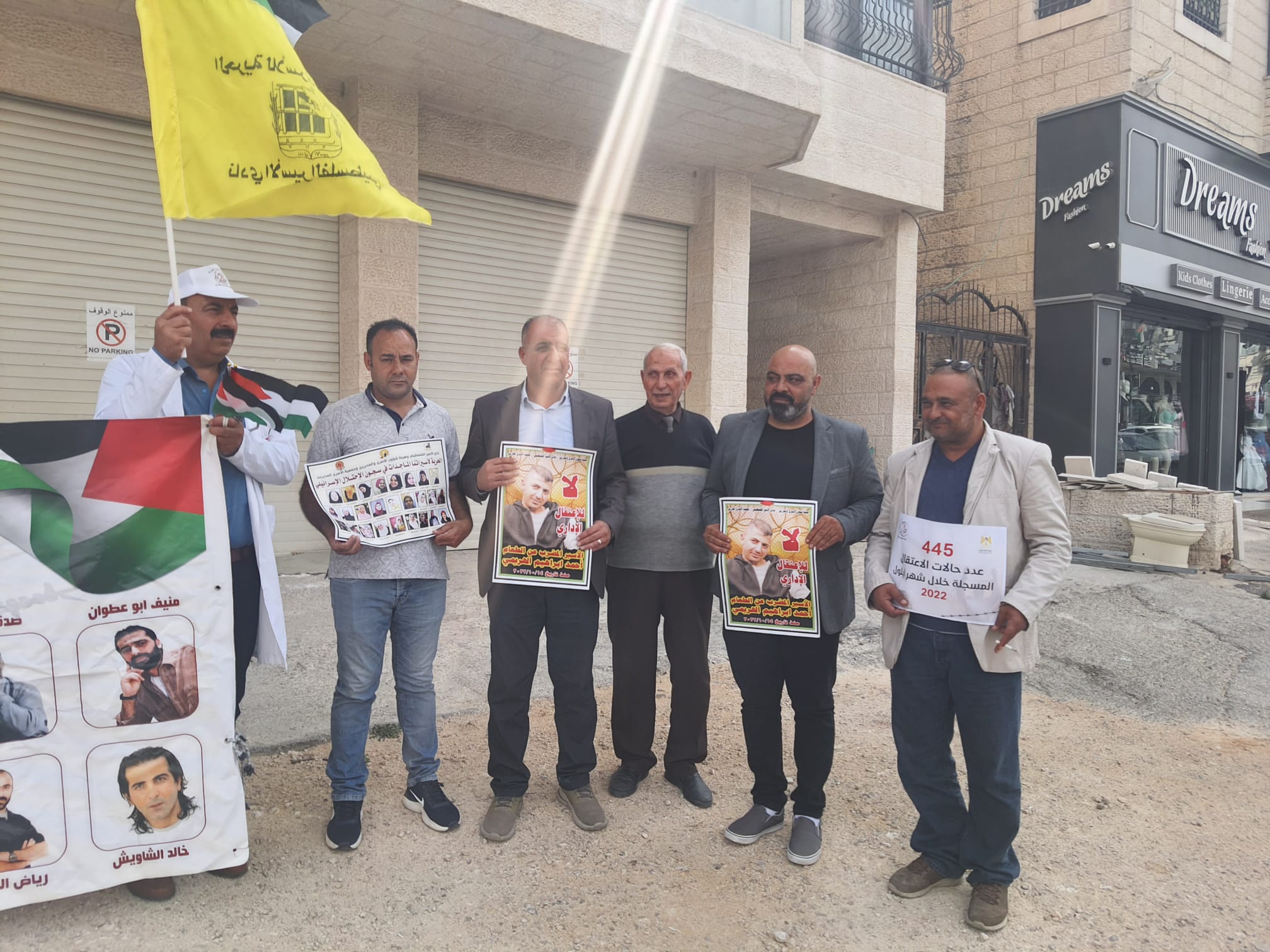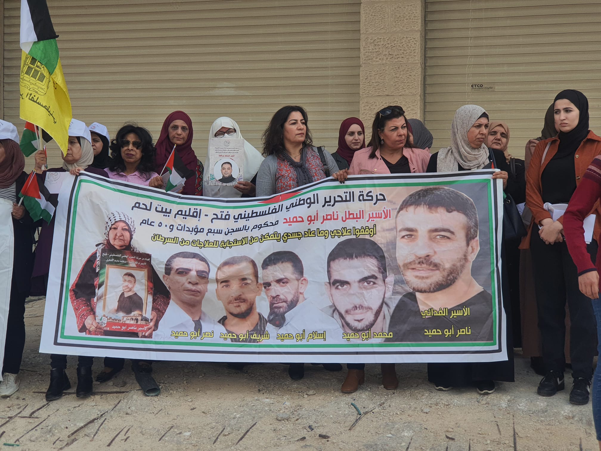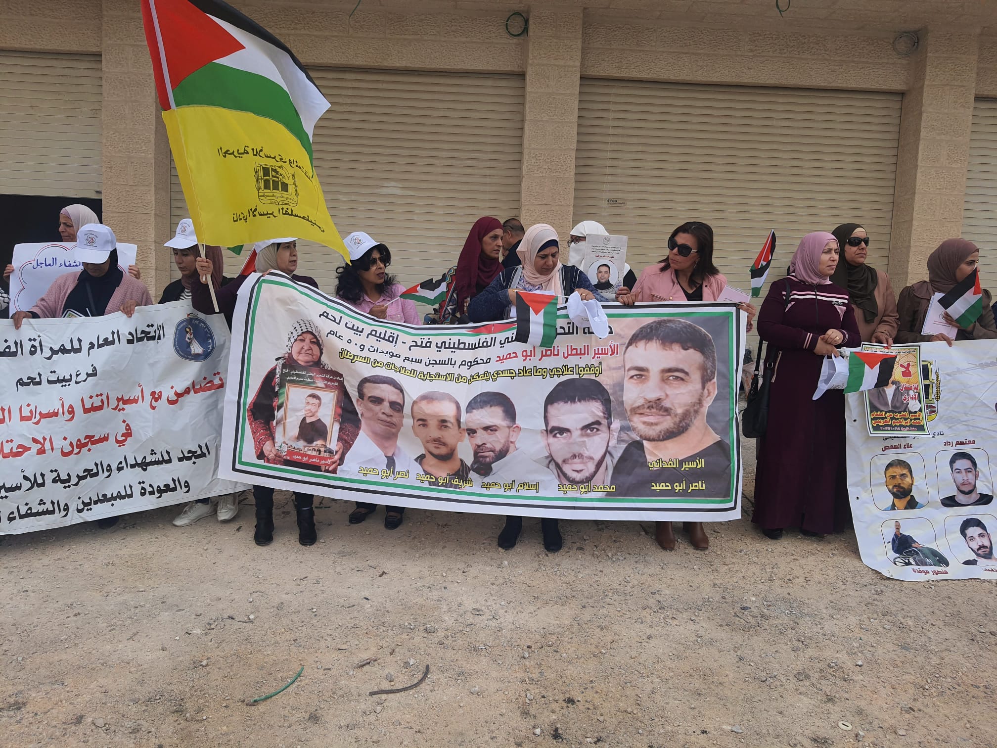 جانب من الوقفة المساندة للاسرى والاسيرات امام الصليب الاحمر في بيت لحم في اليوم الوطني للمرأة الفلسطبنية