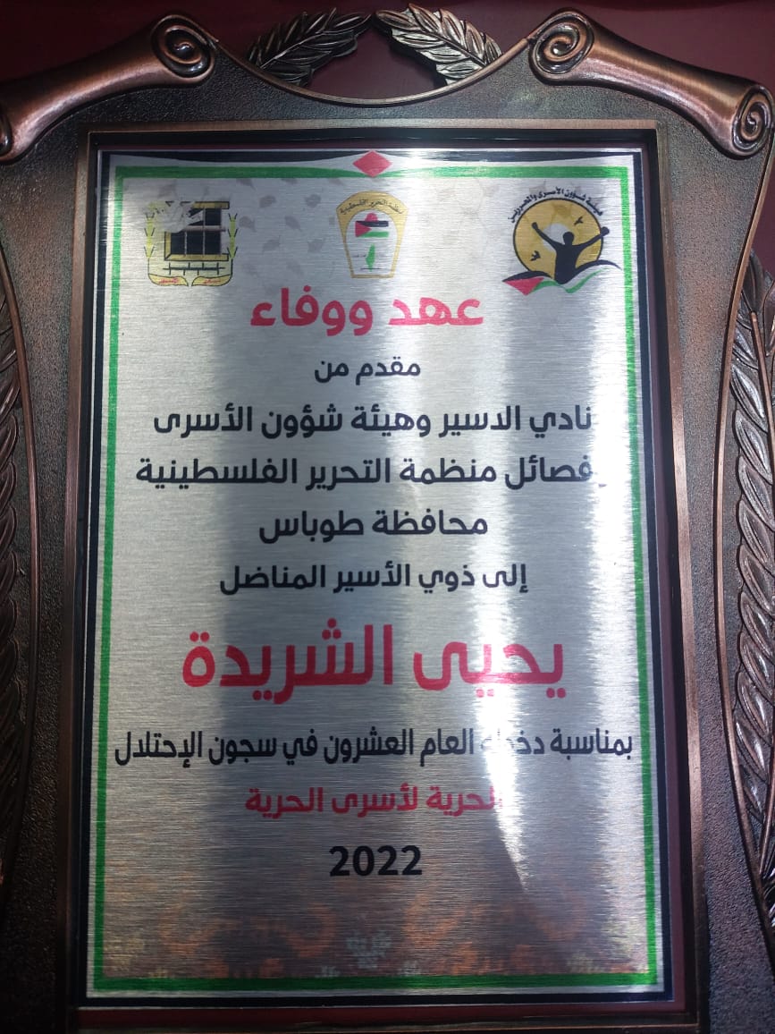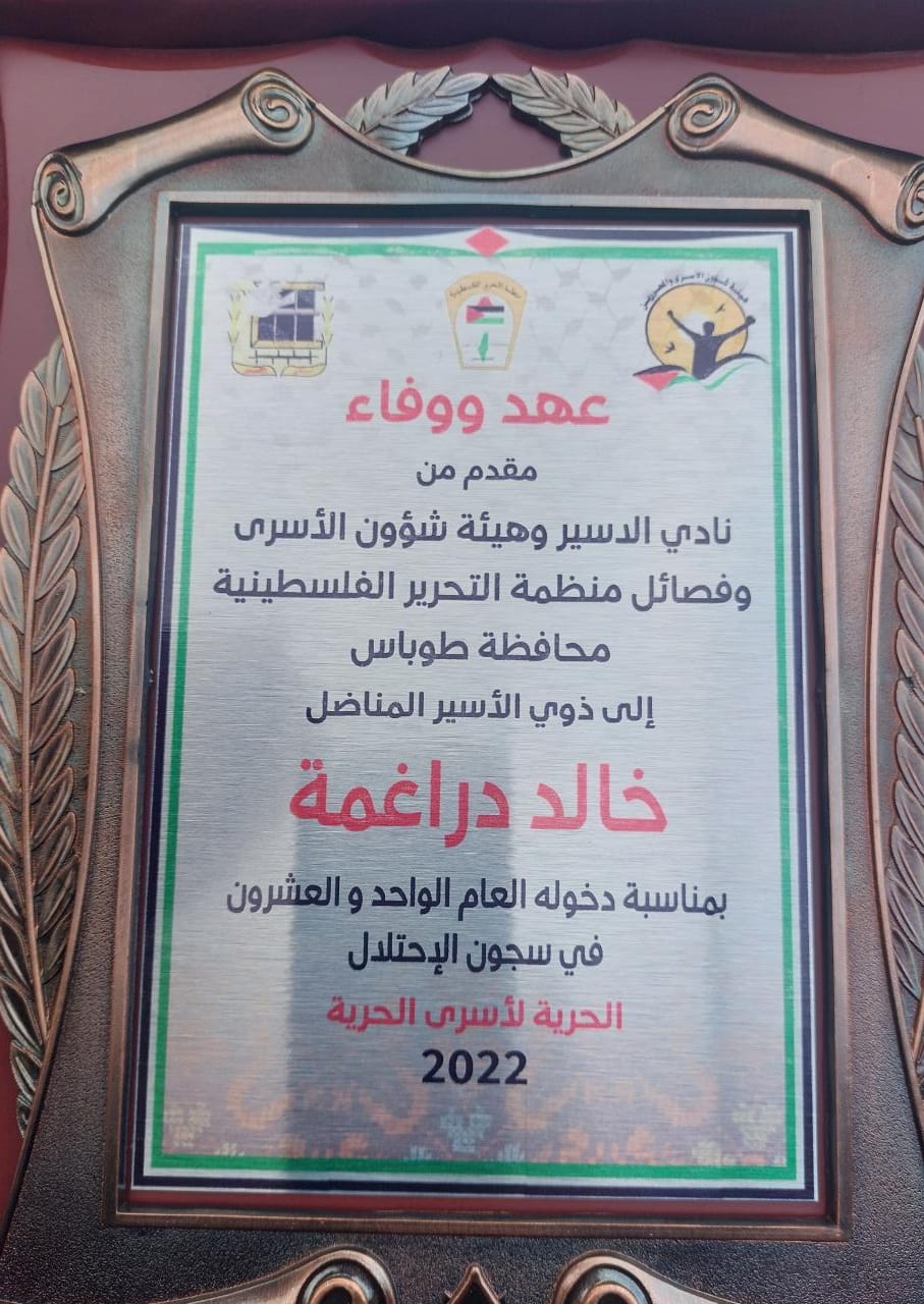 نظم نادي الاسير الفلسطيني وهيئه شؤون الأسرى والمحررين ولجنه التنسيق الفصائلي في محافظه طوباس والاغوار الشماليه زياره لمنزل الأسير خالد دراغمه بمناسبه دخوله عامه الواحد والعشرون ومنزل الاسير يحيى الشريده بمناسبه دخوله عامه العشرون في سجون الاحتلال