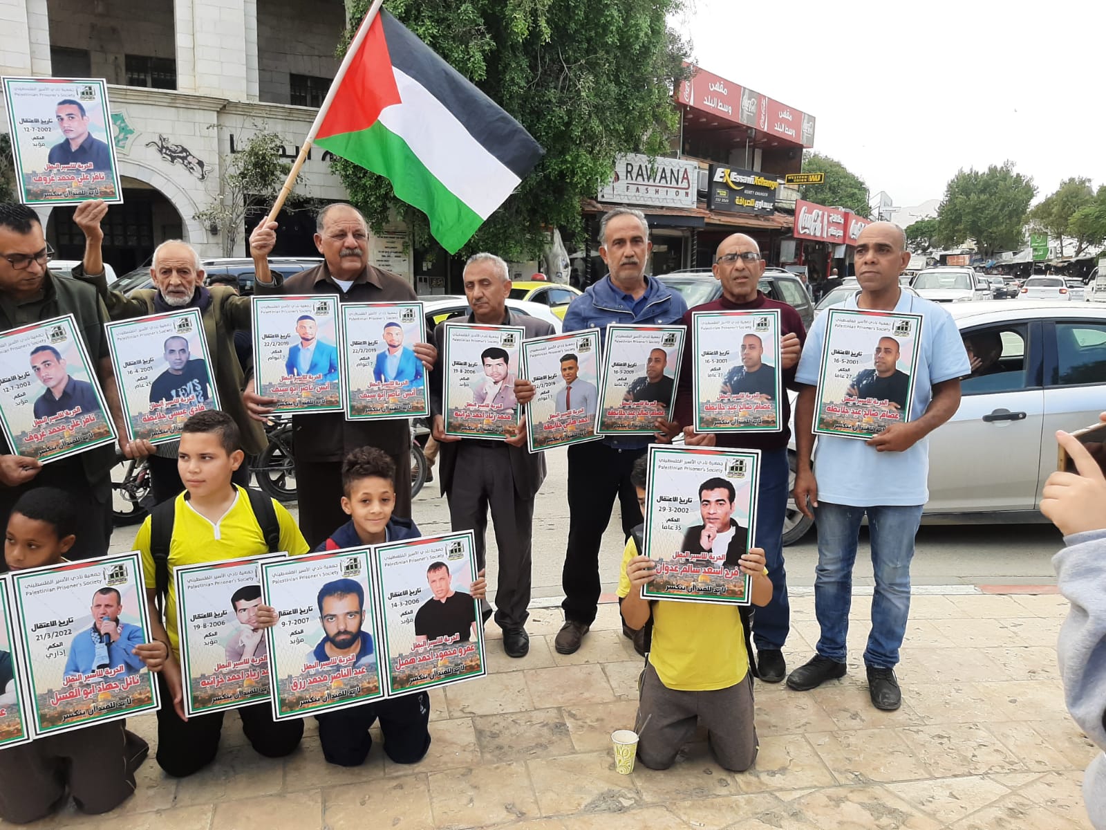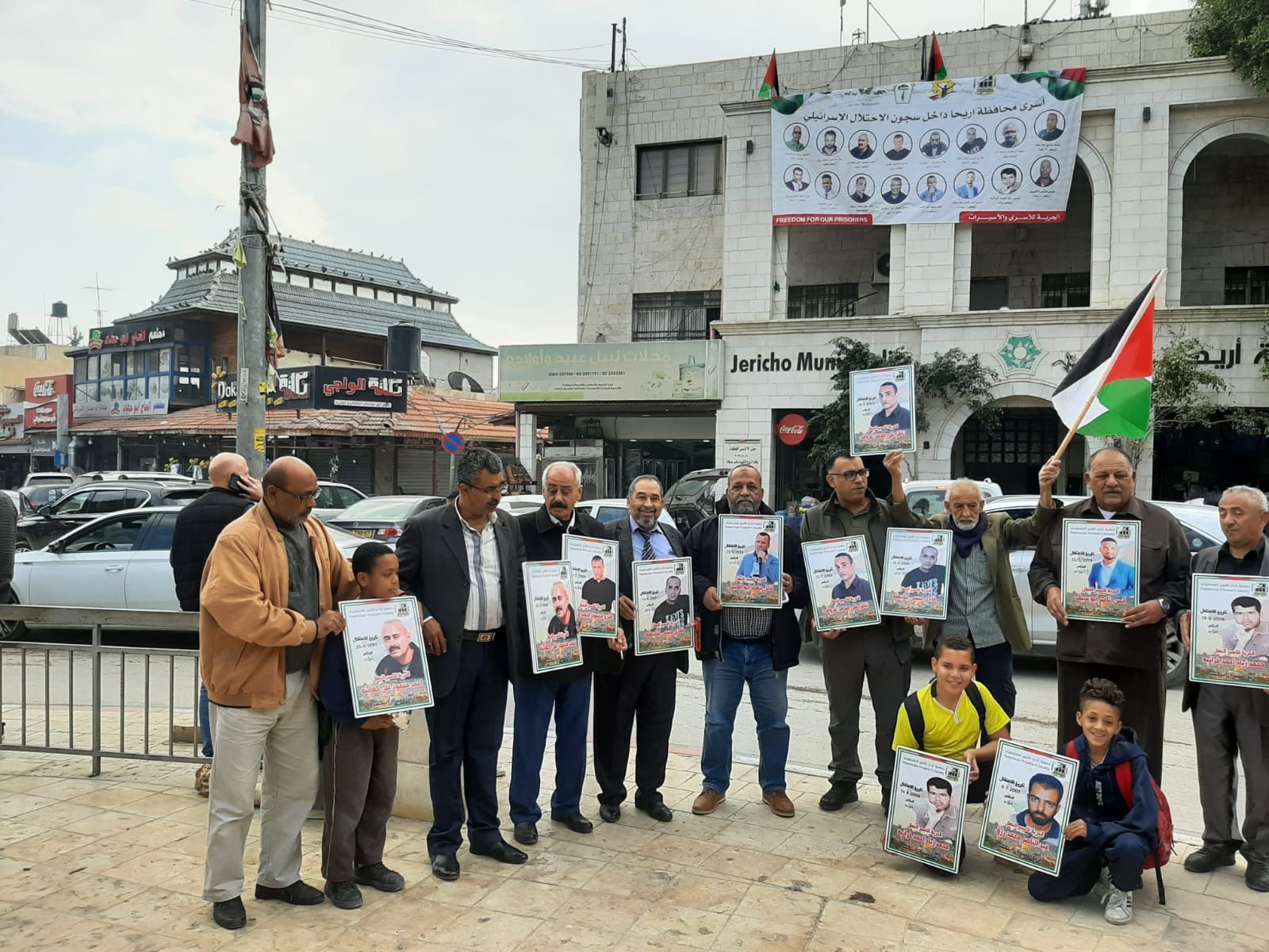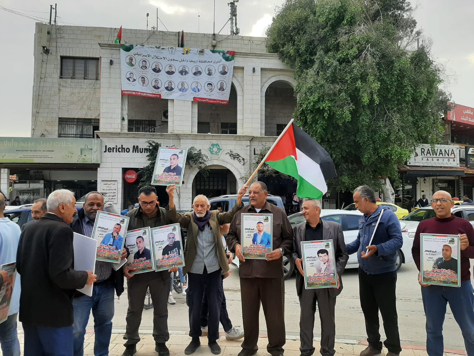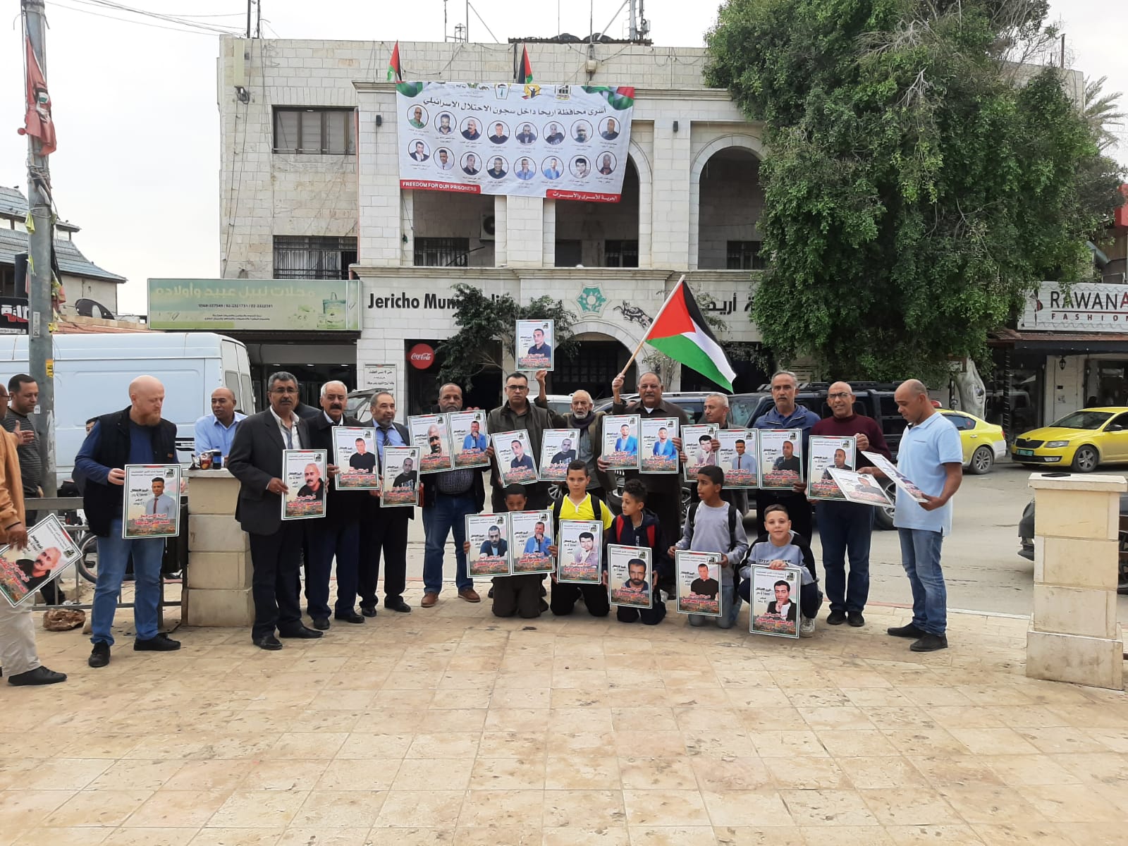 خلال وقفة إسناد للأسيرات والأسرى الذي دعى اليها نادي الأسير الفلسطيني وهيئة شؤون الأسرى والقوى الوطنية في محافظة اريحا والاغوار أمام بلدية أريحا.