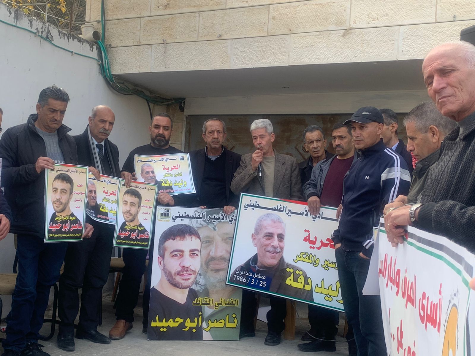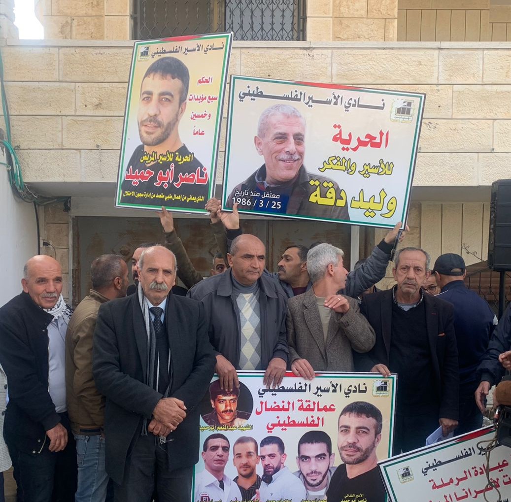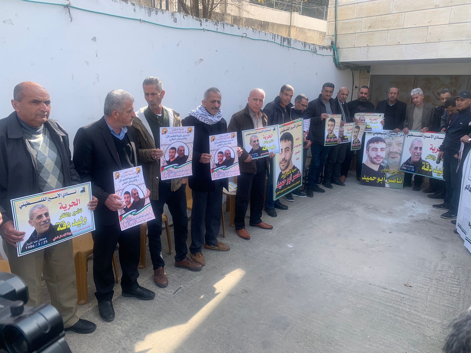 وقفة اسناد مع الأسيرين ناصر ابو حميد ووليد دقة أمام الصليب الأحمر في الخليل