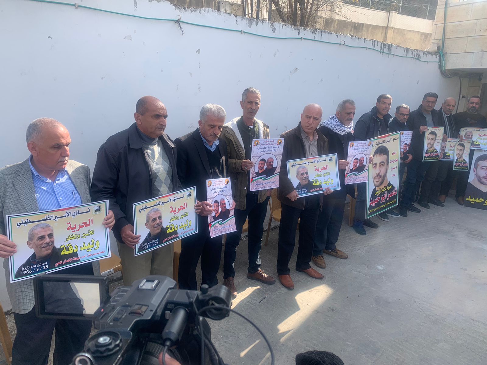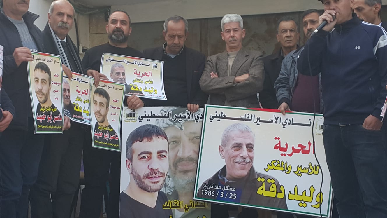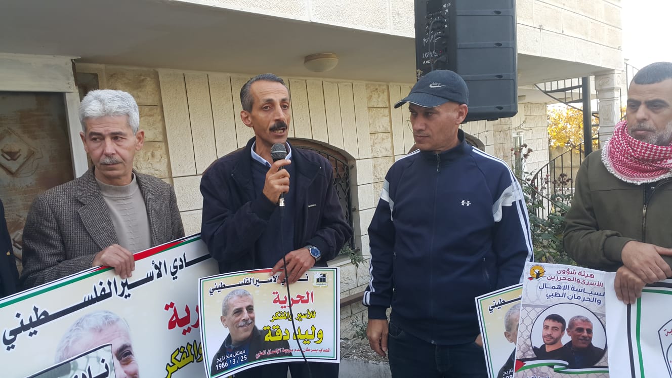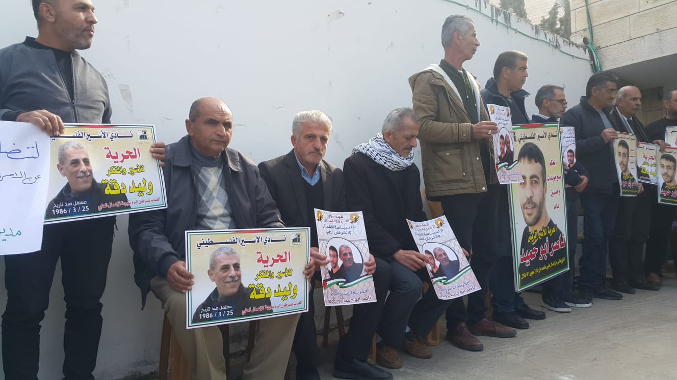 وقفة اسناد مع الأسيرين ناصر ابو حميد ووليد دقة أمام الصليب الأحمر في الخليل