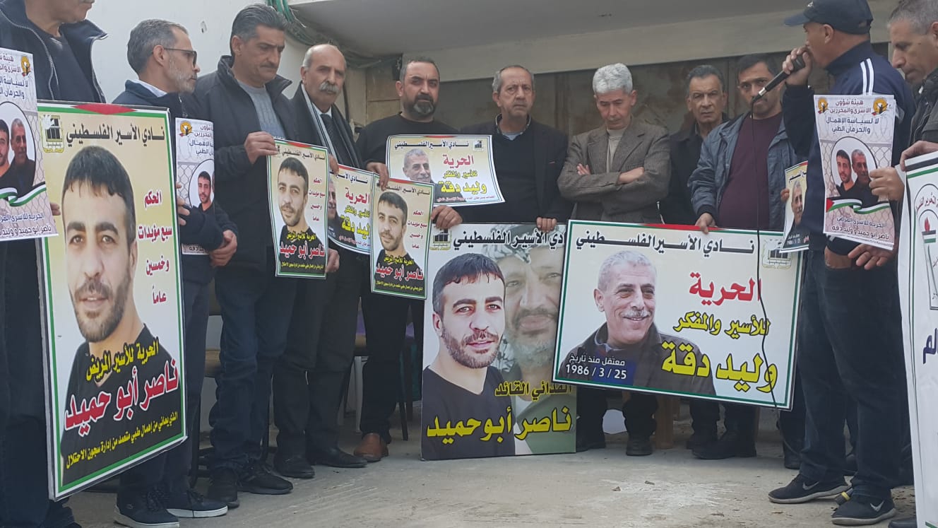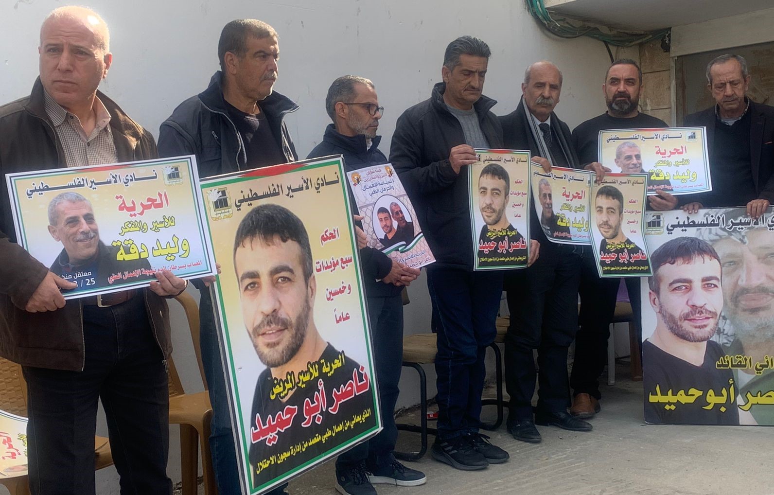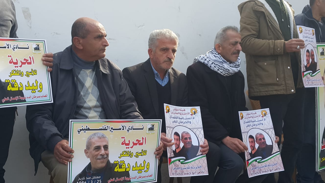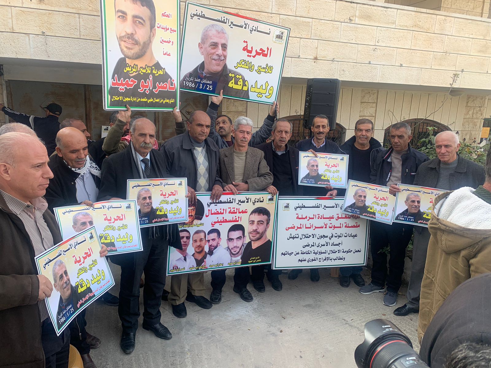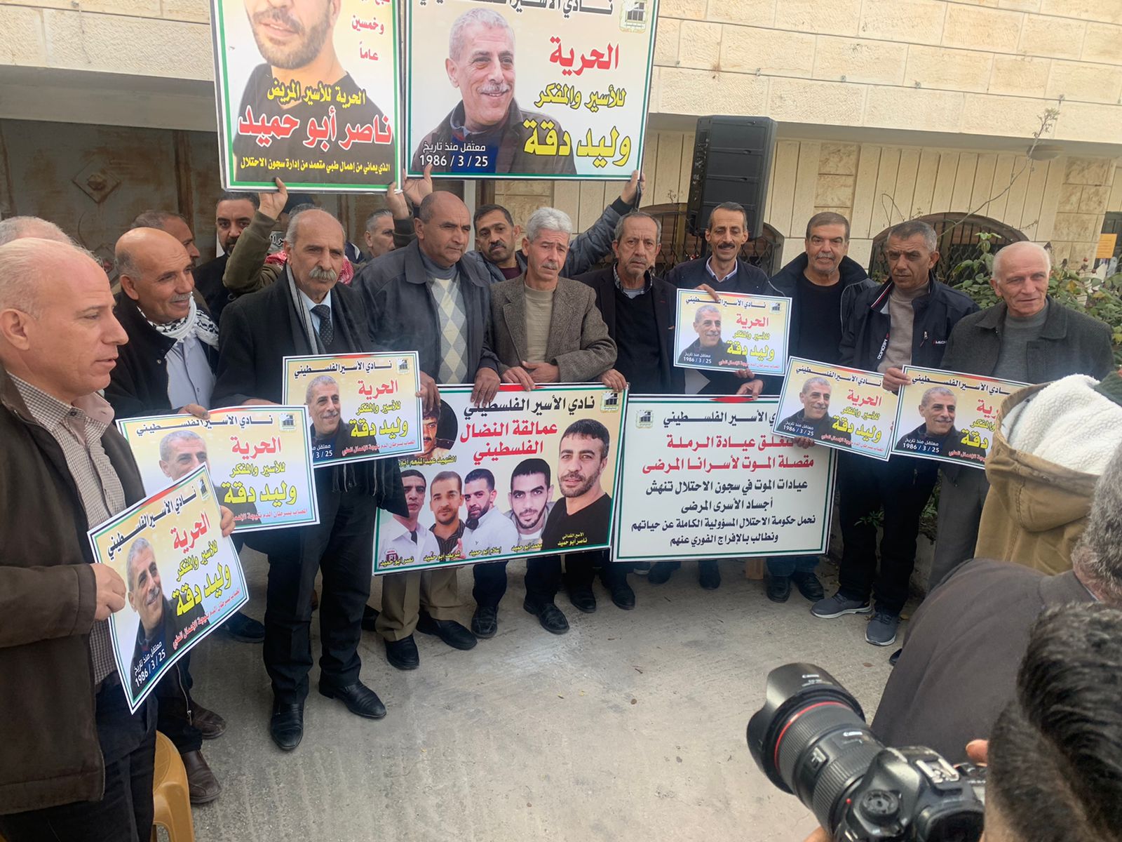 ورفع المشاركون في الوقفة، صور الأسرى المرضى ( ناصر ابو حميد ووليد دقة ) ولافتات كتب عليها شعارات تندد بإجراءات إدارة السجون بحق الأسرى، وتحمّل حكومة الاحتلال المسؤولية كاملة عن حياة الاسرى.