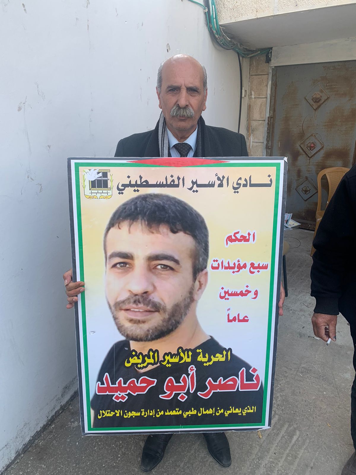 ووجه رئيس الدائرة الاعلامية لنادي الأسير أمجد النجار، التحية الى كل الأسرى والأسيرات في سجون الاحتلال، وخاصة الأسيرين المذكورين، موضحا أن الأسير أبو حميد يحتضر داخل سجن الرملة، والأسير دقة الذي أمضي 37 عاما داخل السجن وتبقى له حتى الافراج عنه عامين، يعاني بشكل كبير جراء مرض السرطان أيضا، ولا يتم تقديم العلاج المناسب له كما المئات من الأسرى المرضى، ونطالب الصليب الأحمر بإصدار بيان فوري يطالب بالإفراج عن أسرانا خاصة المرضى منهم.