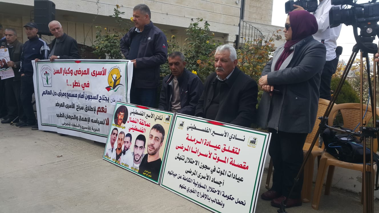 نظم نادي الاسير الفلسطيني في محافظة الخليل وبالشراكة مع هيئة شؤون الاسرى ولجنة اهالي الاسرى والقوى الوطنية وقفة امام الصليب الاحمر الدولي في الخليل مطالبين الصليب الاحمر الدولي بأخذ دوره الحقيقي في توفير الحماية الطبية للاسرى المرضى حسب القانون الدولي واتفاقية جنيف الثالثة والرابعة