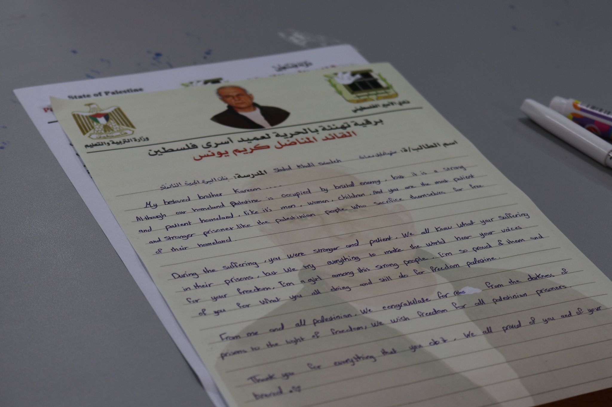 40 ألف رسالة من طلبة فلسطين وفاء للأسير كريم يونس