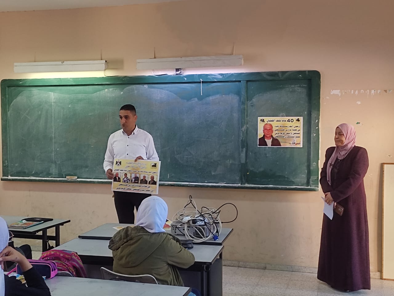 نادي الأسير قلقيلية : محاضرة في مدرسة بنات الخنساء حول حملة اربعون الف رساله .