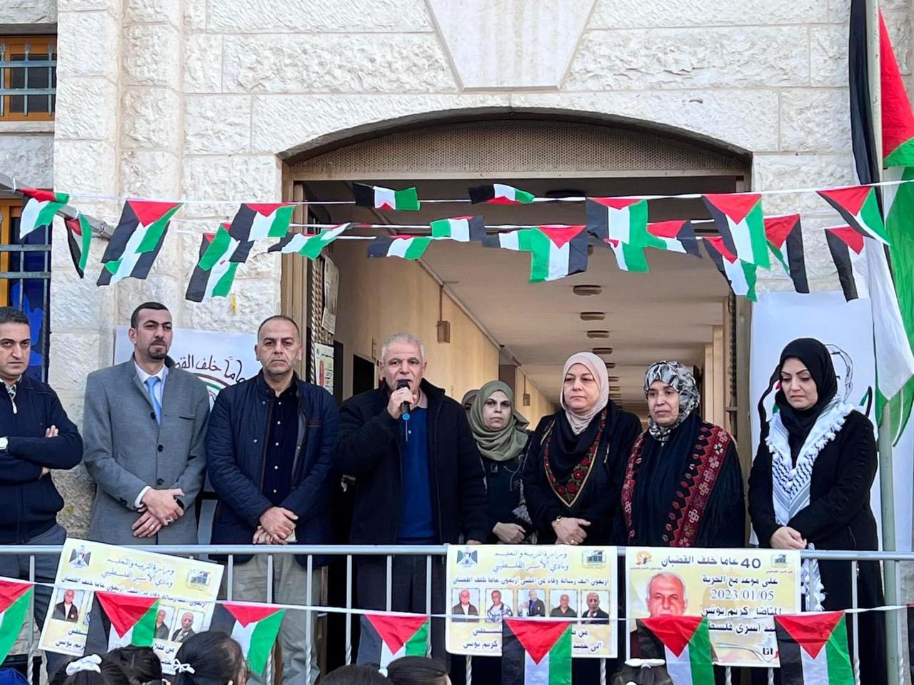 جانب من اطلاق تربية قلقيلية و نادي الأسير الفلسطيني؛ حملة رسائل الوفاء للأسير كريم يونس؛ والذي قضى ٤٠ عاما في الأسر؛ وعلى موعد مع الحرية خلال الأيام القادمة. بحضور مدير التربيه والتعليم ومدير نادي الاسير ومنسقة الشبيبه الفتحاويه ، وذلك في مدرسة بنات الخنساء الأساسية؛ حيث شاركت طالبات المدرسة بكتابة رسائل الوفاء للأسير يونس؛ كما تضمنت الحملة كلمات للتعريف بالأسير يونس؛ وفعاليات تضامنية مع أسرى الحرية في سجون الاحتلال.