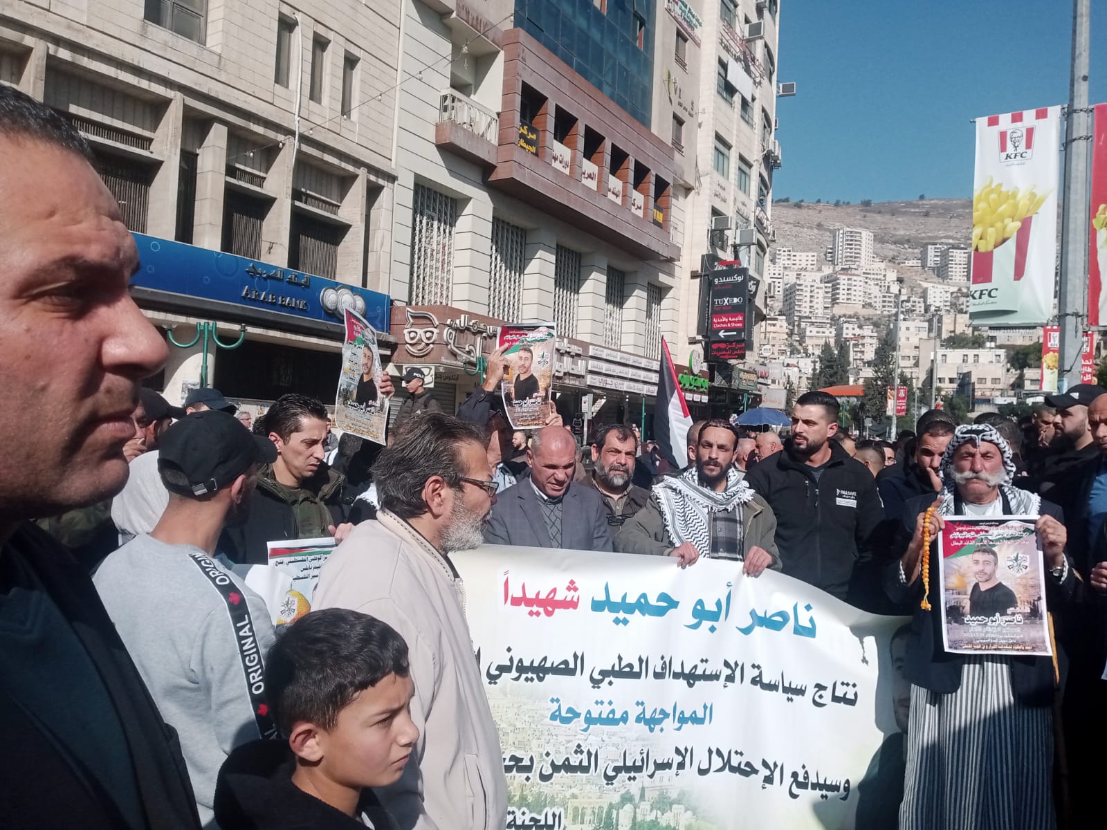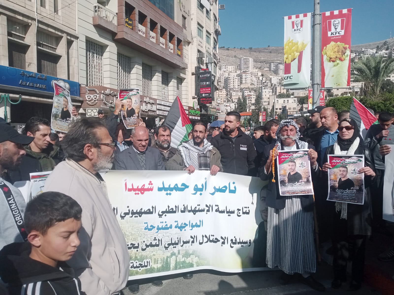 من الوقفه في نابلس استنكار وغضب لاستشهاد القائد الأسير ناصر ابو حميد الرحمه والمغفره لروحه الطاهره