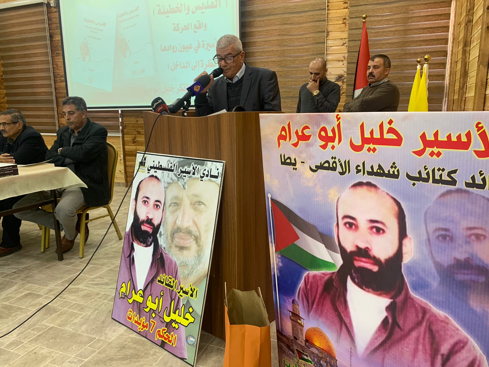 وفي كلمة حركة فتح امناء سر الاقاليم القاها عنهم الاخ نبيل ابو قبيطة امين سر حركة فتح في اقليم يطا وضواحيها موجها التحية الى الحركة الوطنية الاسيرة مشيدا بصمودهم خلف القضبان ومستعرضا السيرة النضالية للاسير خليل ابو عرام والذي وهب حياته مناضلا في صفوف حركة فتح وقائدا فعالا فيها مستمرا في دوره النضالي داخل سجون الاحتلال واصفا اياه بقائد الثورة الثقافية داخل السجون ومؤكدا في نفس الوقت ان الحركة الوطنية الاسيرة أصبحت في أحوج ما تكون الى إستعادة دورها النضالي والمؤثر في الساحة السياسية ومطالب الكل الفلسطيني بالتحرك لانقاذ الاسرى من أجرام الاحتلال المستمر بحقهم .