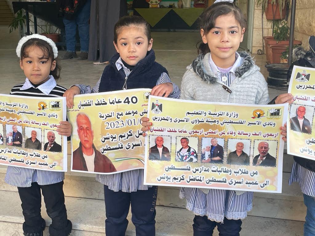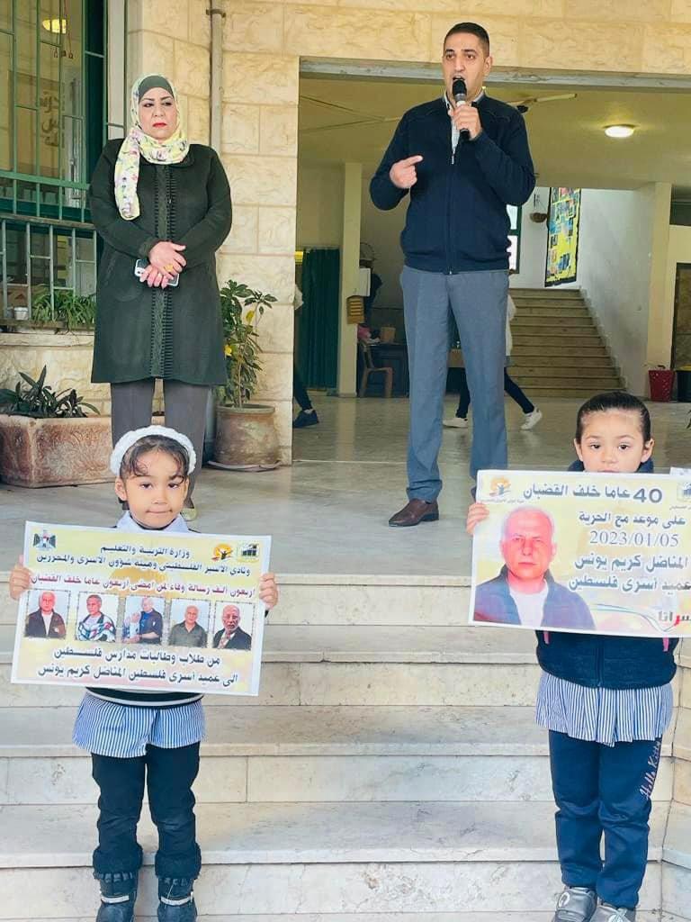 استمراراً لحملة اربعون الف رساله ، تم التعريف بالاخ كريم يونس والاخ الشهيد ناصر خلال الطابور الصباحي في مدرسة بنات يوسف عوده ومن ثم محاضره عن الاسرى بشكل عام .