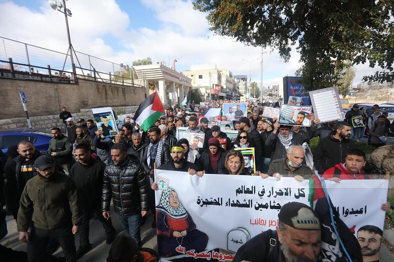صور من انطلاق"مسيرة الخلود"، من أمام مخيم الأمعري بالبيرة اليوم، انتصارًا لعائلات الشهداء المحتجزة جثامينهم