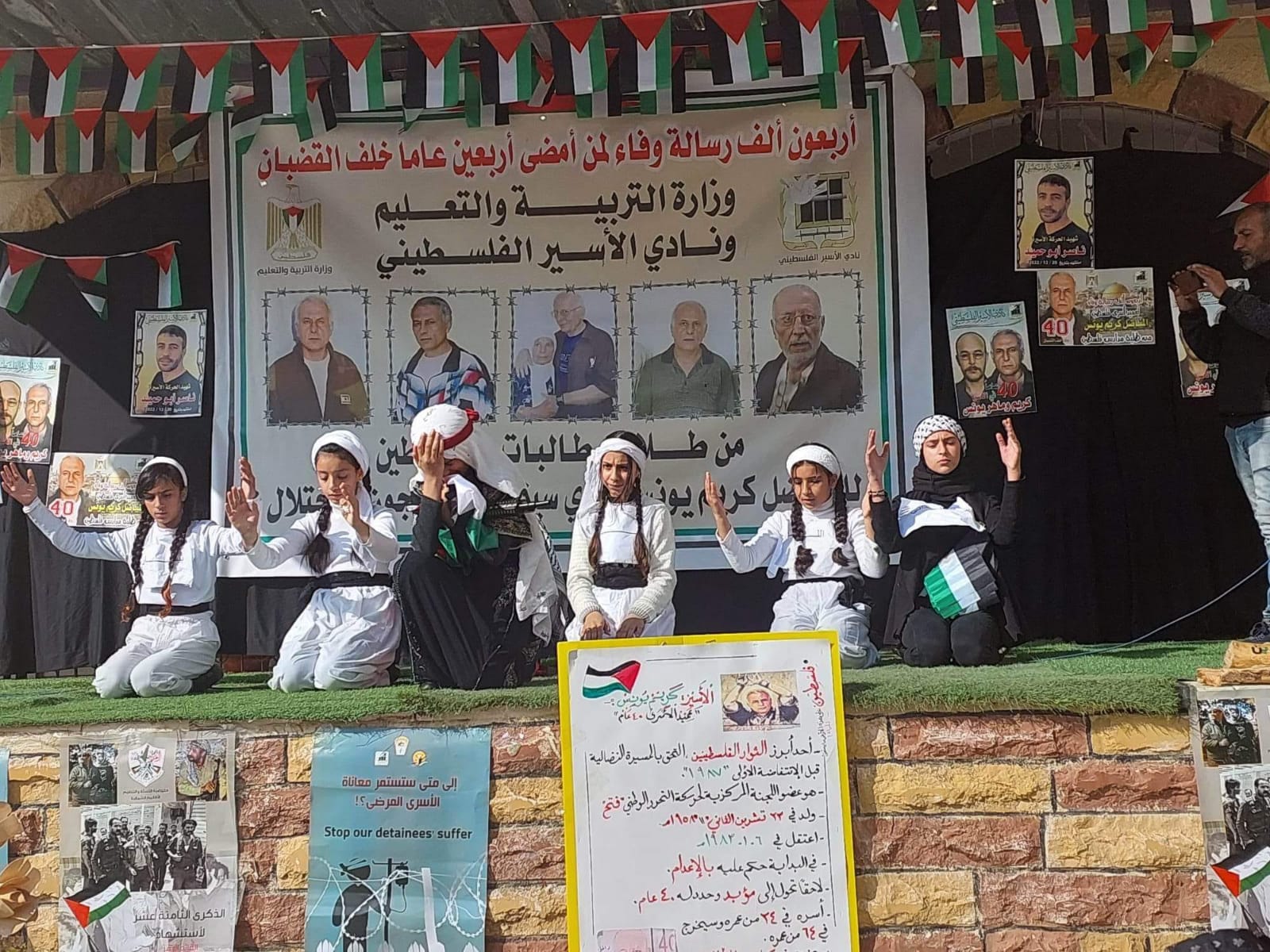 وتخلل الحفل الوطني العديد من الفقرات الفنية والقصائد الشعرية المعبرة عن صمود الاسرى حيث قدمت فرقة مسرح مدرسة حمد الله الخطيب المختلطة من اعداد المعلمة اماني النجار مسرحية هادفه عن نضال عائلة ابو حميد وعشقهم للنضال والكفاح وتصديهم لكل اجراءات الاحتلال والتي لاقت ترحابا من الضيوف والطلبة ..