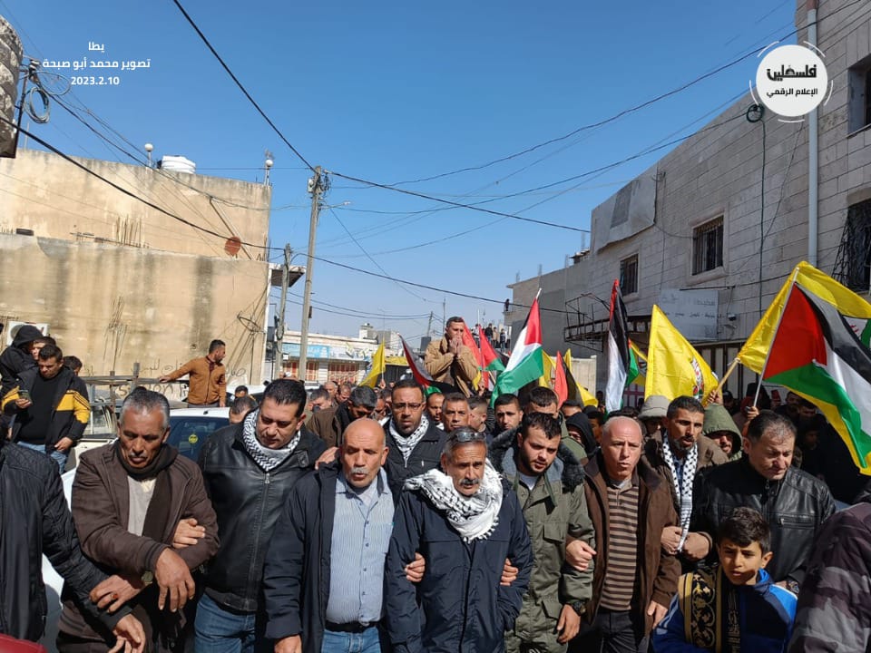 وانطلقت المسيرة من امام مسجد يطا الكبير وسط البلد بعد صلاة الجمعة مباشرة يتقدمها قيادة اقليم حركة فتح اقليم يطا وضواحيها وعلى رأسهم نبيل ابو قبيطة امين السر وامجد النجار مدير نادي الاسير الفلسطيني وكافة فعاليات مدينة يطا من مؤسساتها العامة والخاصة وكوادر الحركة الوطنية الاسيرة وأبناء الشهيد وعائلته وجماهير مدينة يطا ...