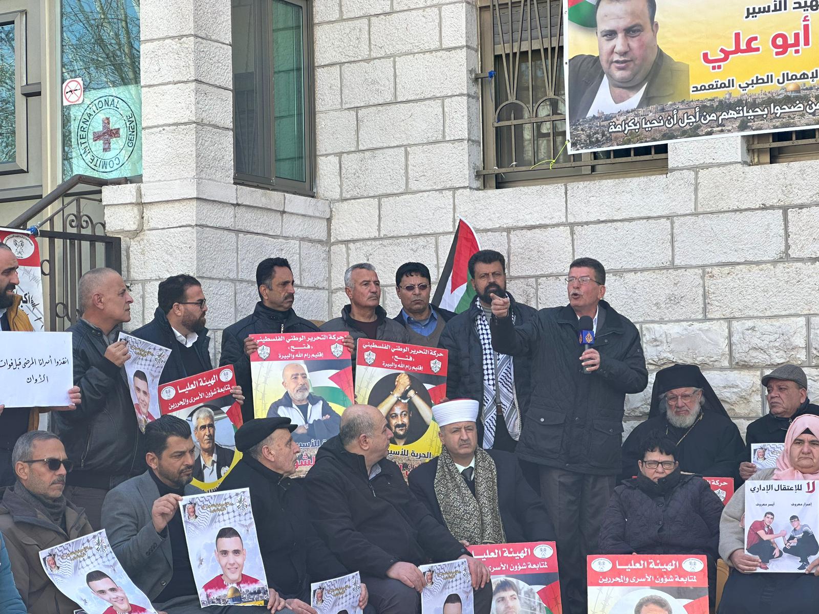 البيرة اليوم: من الاعتصام الإسنادي للأسرى في سجون الاحتلال الإسرائيليّ، من أمام مقر الصليب الأحمر