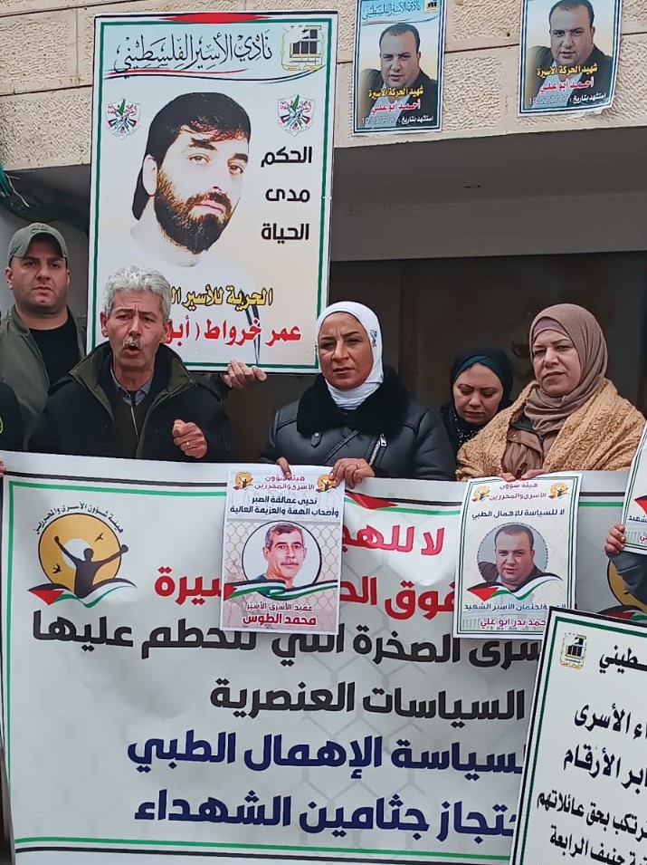 وأكد الاسير المحرر احمد محمد ابو علي ابن عم الشهيد أحمد بدر أبو علي الذي استُشهد، فجر يوم الجمعة الماضي، في مستشفى (سوروكا)، نتيجة لجريمة الإهمال الطبي: إننا لن نقف مكتوفي اليد أمام سياسة القتل التي ينفذها الاحتلال بحق أبنائنا الأسرى، ولن ننتظر عودتهم إلينا جثثا، ولكي نمنع ذلك، يجب علينا وعلى كافة أبناء شعبنا الالتفاف بشكل أكبر حول قضية الأسرى.