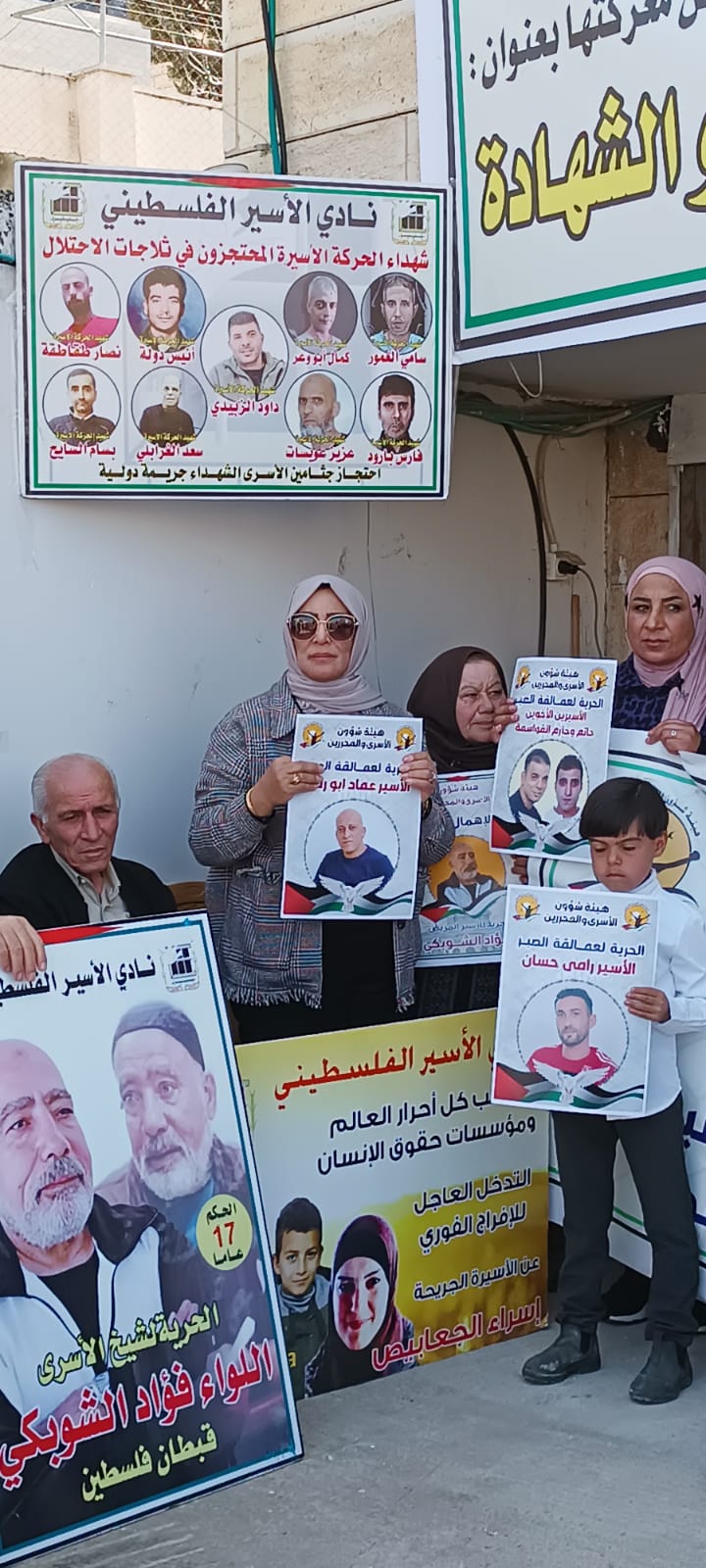 بدوره، أشار مدير هيئة شؤن الأسرى والمحررين في الخليل إبراهيم نجاجرة، إلى أن الفعالية تأتي اسنادا للأسرى في خطواتهم الرافضة لسياسة إدارة السجون، وهي رسائل للمجتمع المحلي والدولي، بأن تهدئة الأسرى تحتاج إلى تراجع حكومة الاحتلال عن كافة إجراءاتها التعسفية بحق الأسرى.