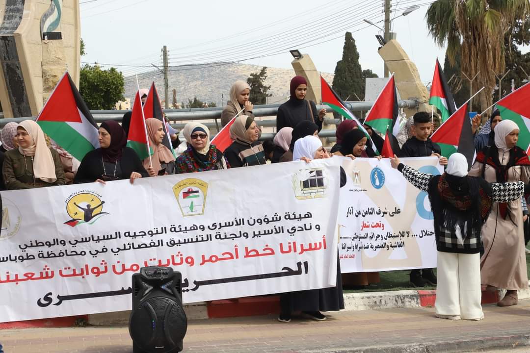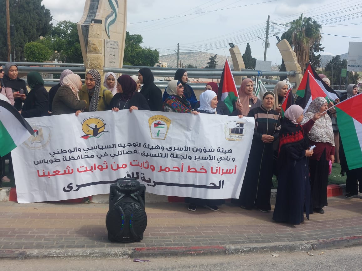 طوباس من الوقفة الداعمة والمساندة مع اسيراتنا الماجدات وأسرانا البواسل والتي دعا لها إتحاد المرأة ونادي الاسير الفلسطيني وهيئة شؤون الأسرى والمحررين ولجنة التنسيق الفصائلي في محافظة طوباس والاغوار الشمالية على شرف الثامن من آذار. يوم المرأة الفلسطينية
