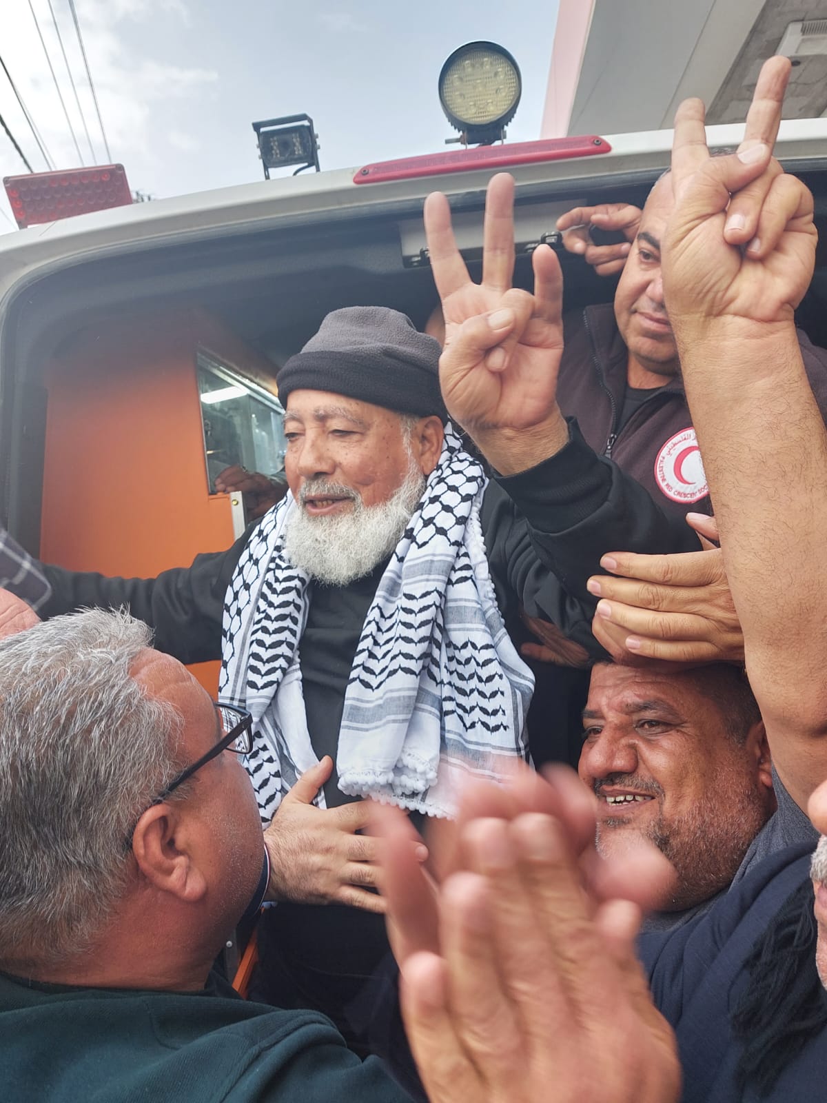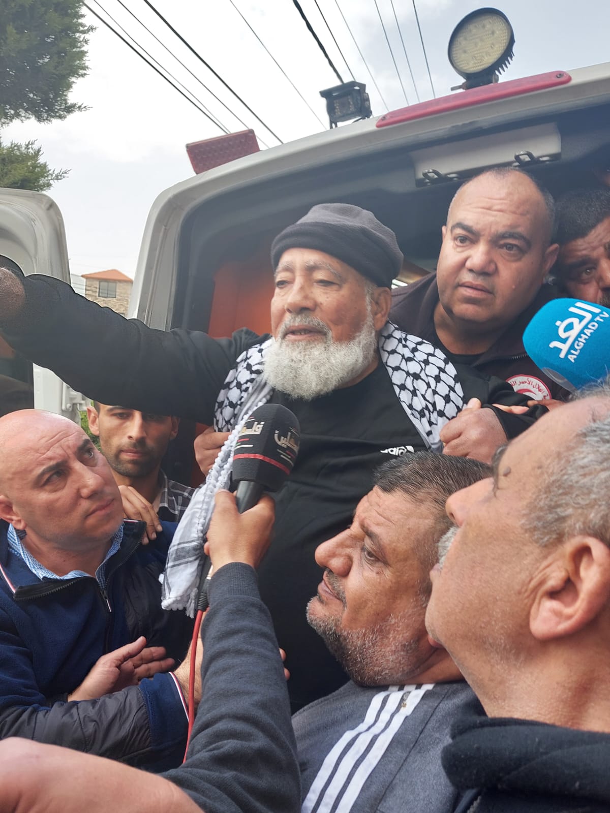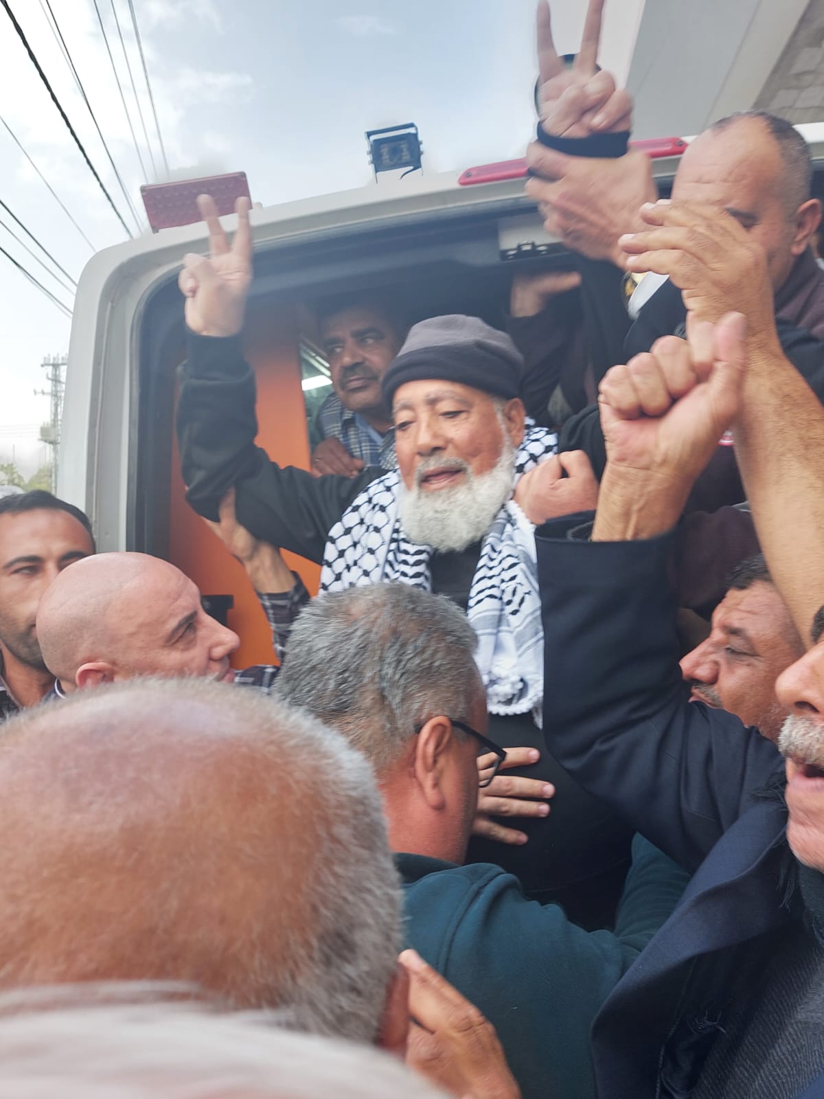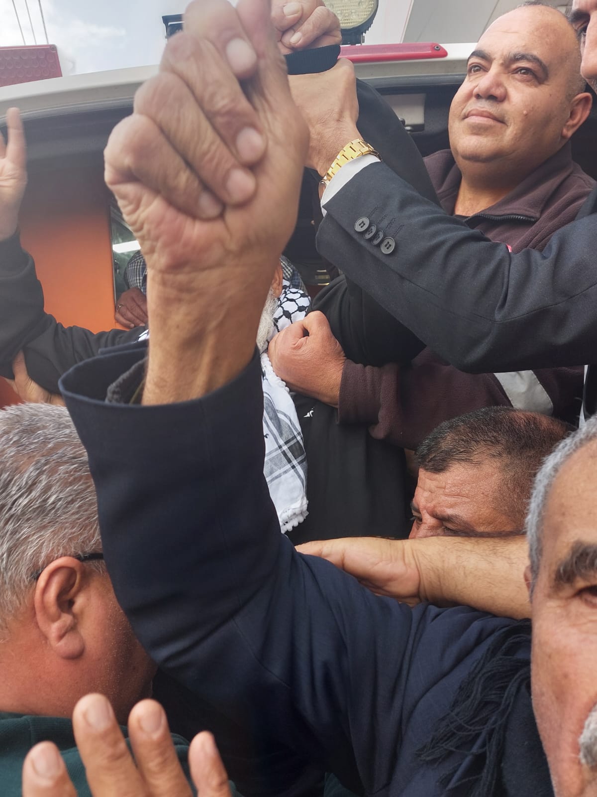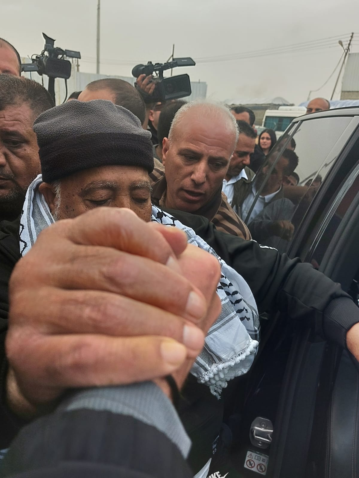 جانب من استقبال الأسير الحر اللواء فؤاد الشوبكي من قبل نادي الأسير على معبر ترقوميا