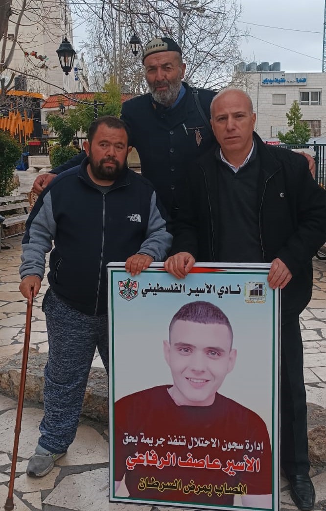 يُشار إلى أن المئات من الأسرى المرضى يقبعون في سجون الاحتلال، ويواجهون ظروفا قاهرة وصعبة، منهم نحو 200 أسير يعانون من أمراض مزمنة، إضافة إلى أن نحو 24 أسيرا يعانون من السرطان والأورام بدرجات مختلفة، وأصعب هذه الحالات حالة الأسير عاصف الرفاعي.