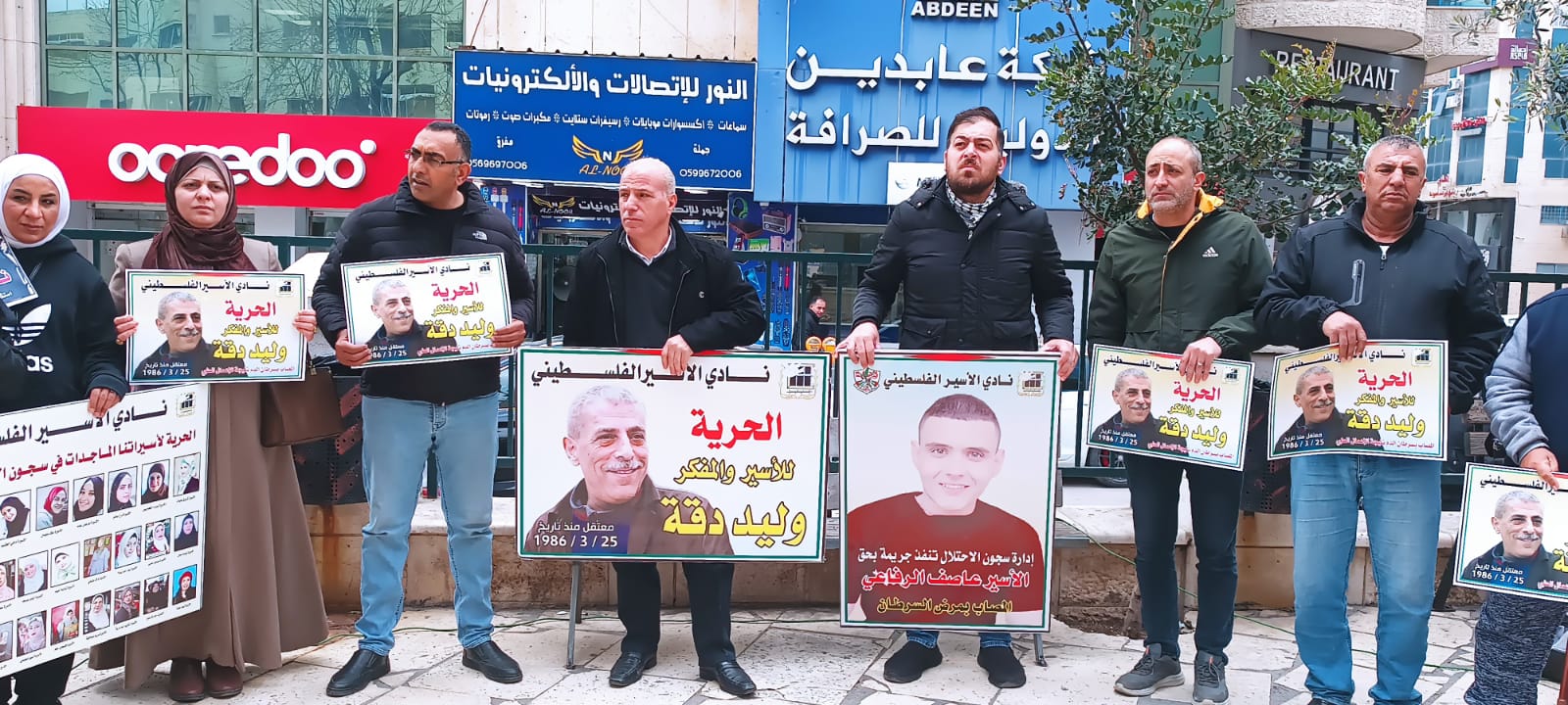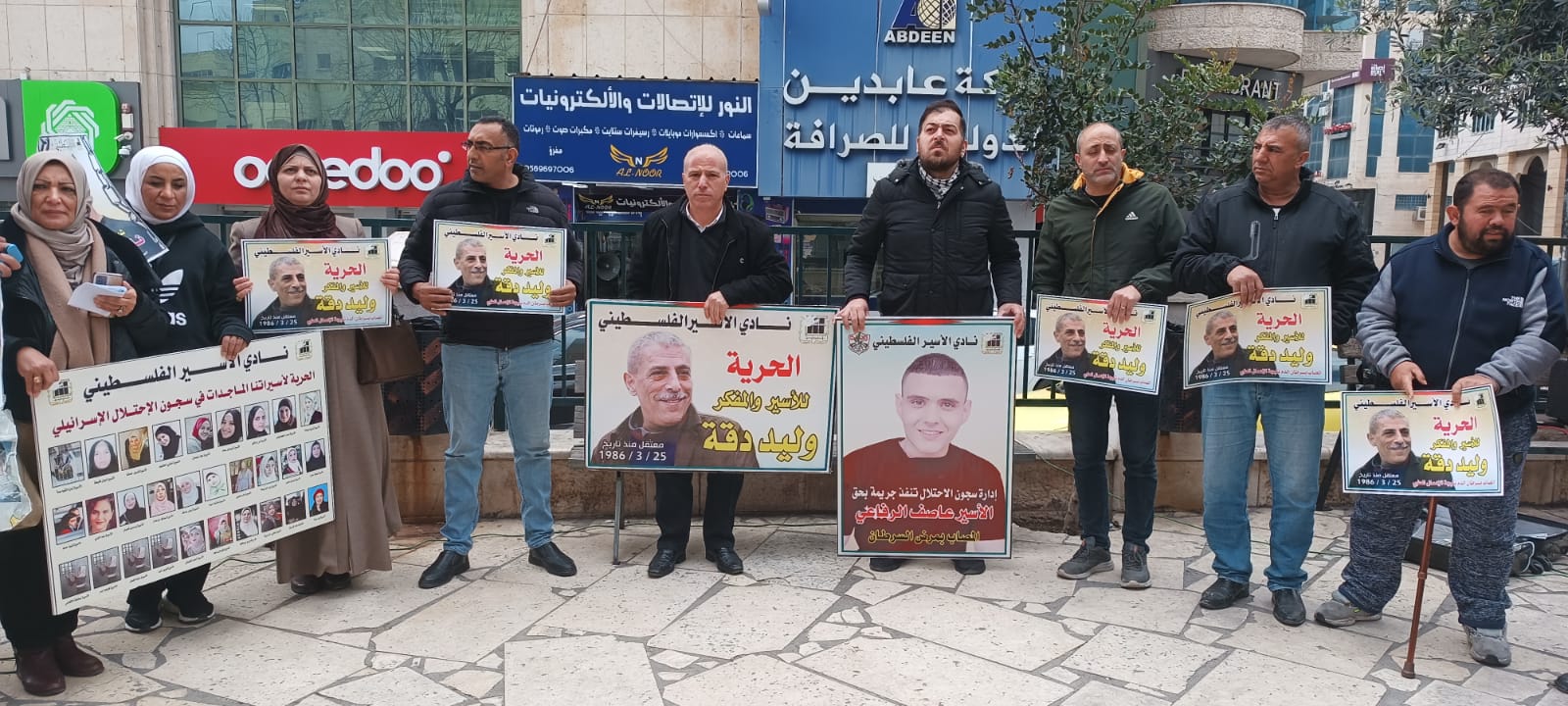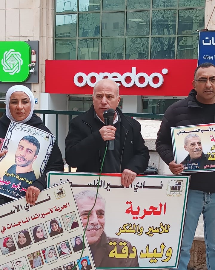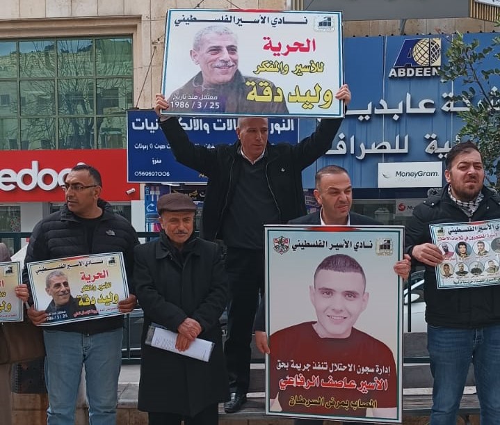 وشارك في الوقفة التي نظمتها فصائل العمل الوطني في المحافظة، بالتعاون مع نادي الأسير الفلسطيني ، وهيئة شؤون الأسرى والمحررين، حشد من المواطنين، وممثلو المؤسسات الرسمية والأهلية، ورفعوا خلالها العلم الفلسطيني، وصورا للأسيرين المريضين وليد دقة وعاصف الرفاعي، ورددوا الشعارات المنددة بالاحتلال والداعية لإنقاذ حياة أسرانا وإطلاق سراحهم.