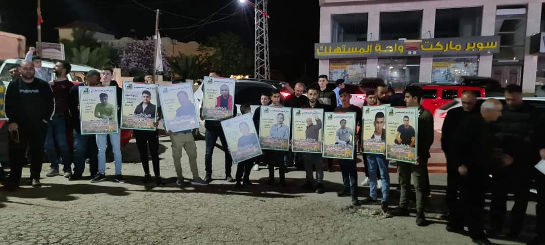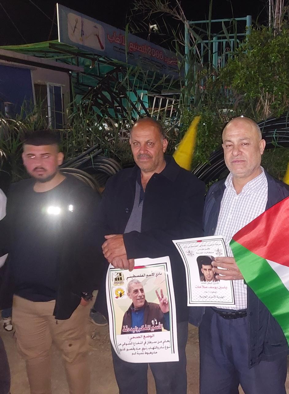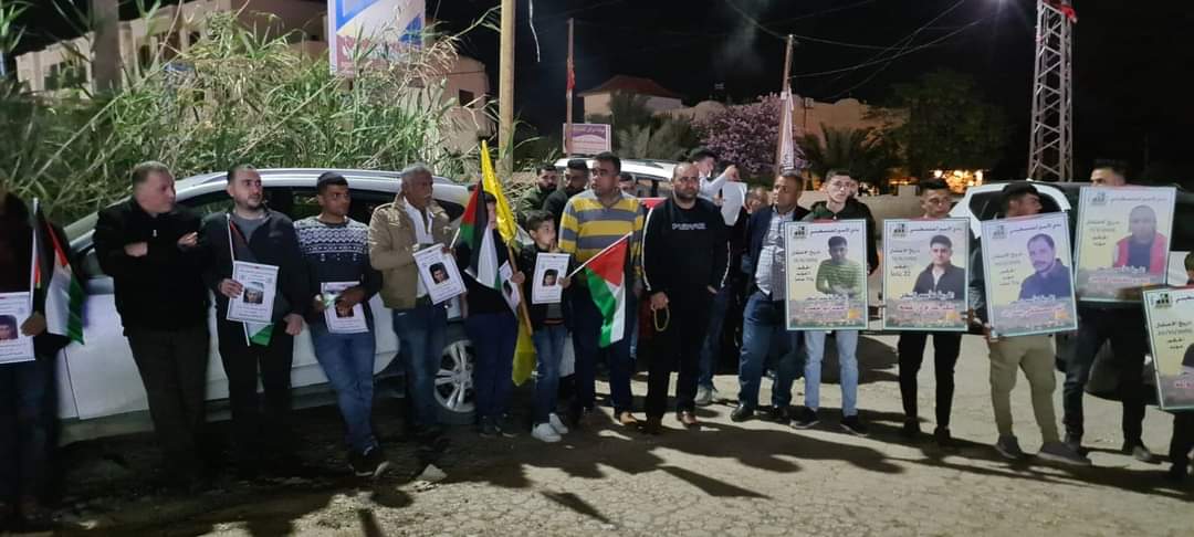 طوباس 4-4-2023 وفا- شارك أبناء شعبنا في محافظة طوباس والأغوار الشمالية، مساء اليوم الثلاثاء، في وقفة دعم وإسناد للأسرى المرضى في معتقلات الاحتلال الإسرائيلي، وذلك في وادي الفارعة جنوب المحافظة.