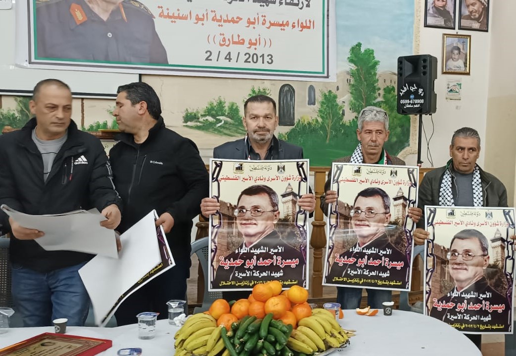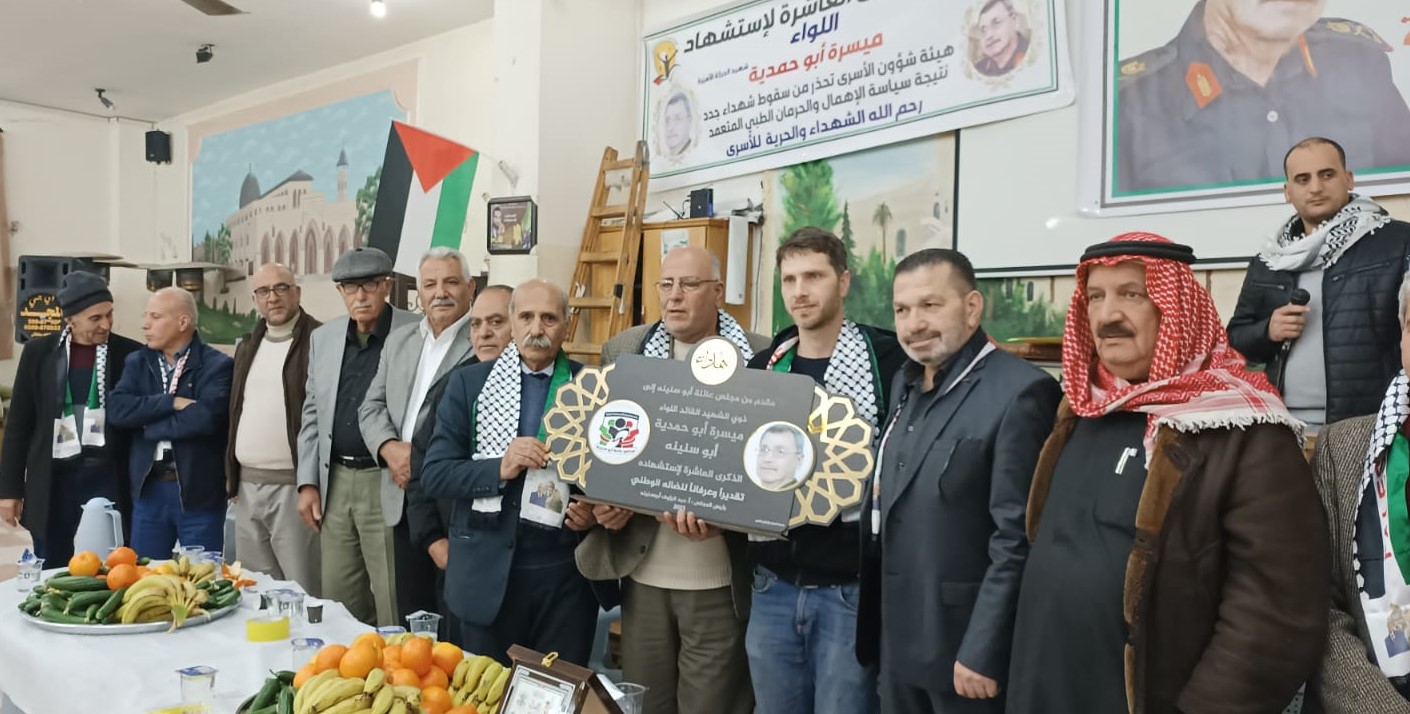 الخليل / أحياء للذكرى العاشرة لاستشهاد الاسير اللواء ميسرة ابو حمدية ( أبو سنينة ) وتحت رعاية مجلس عائلة ابو سنينة ( عائلة الاسير ميسرة ابو حمدية وبدعوة من نادي الاسير الفلسطيني وهيئة شؤون الاسرى وبالشراكة مع حركة فتح اقليم وسط الخليل ولجنة الشبيبة الثانوية نظم اليوم في قاعة ديوان عائلة ابو سنينة مهرجان تأبيني للشهيد اللواء ميسرة ابو حمدية ...