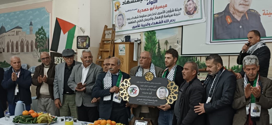 وفي كلمة ابراهيم نجاجرة مدير هيئة شؤون الاسرى مؤكدا ان ما تعرض له الشهيد ميسرة ابو حمدية من إهمال طبي متعمد وموثق بشكل كامل مدعاه للتحرك دوليا لملاحقة حكومة الاحتلال على جرائمها بحق الاسرى المرضى وان ما يحدث داخل سجون الاحتلال يأتي ضمن تعليمات المجرم ايتمار بن غفير والذي يستهدف الاسرى بشكل مباشر وهذا يتطلب توسيع دائرة العمل الشعبي والجماهيري لاظهار معاناة الاسرى المرضى داخل سجون الاحتلال ..