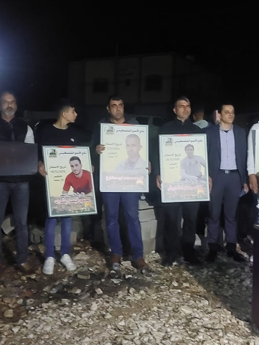 طوباس 15-4-2023 وفا- شاركت فعاليات طوباس، مساء اليوم السبت، في وقفة تضامنية مع الأسرى المرضى في سجون الاحتلال، وايقاد شعلة انطلاق فعاليات نادي الأسير من أمام قبر شهيد الحركة الأسيرة بشار عارف بني عوده.