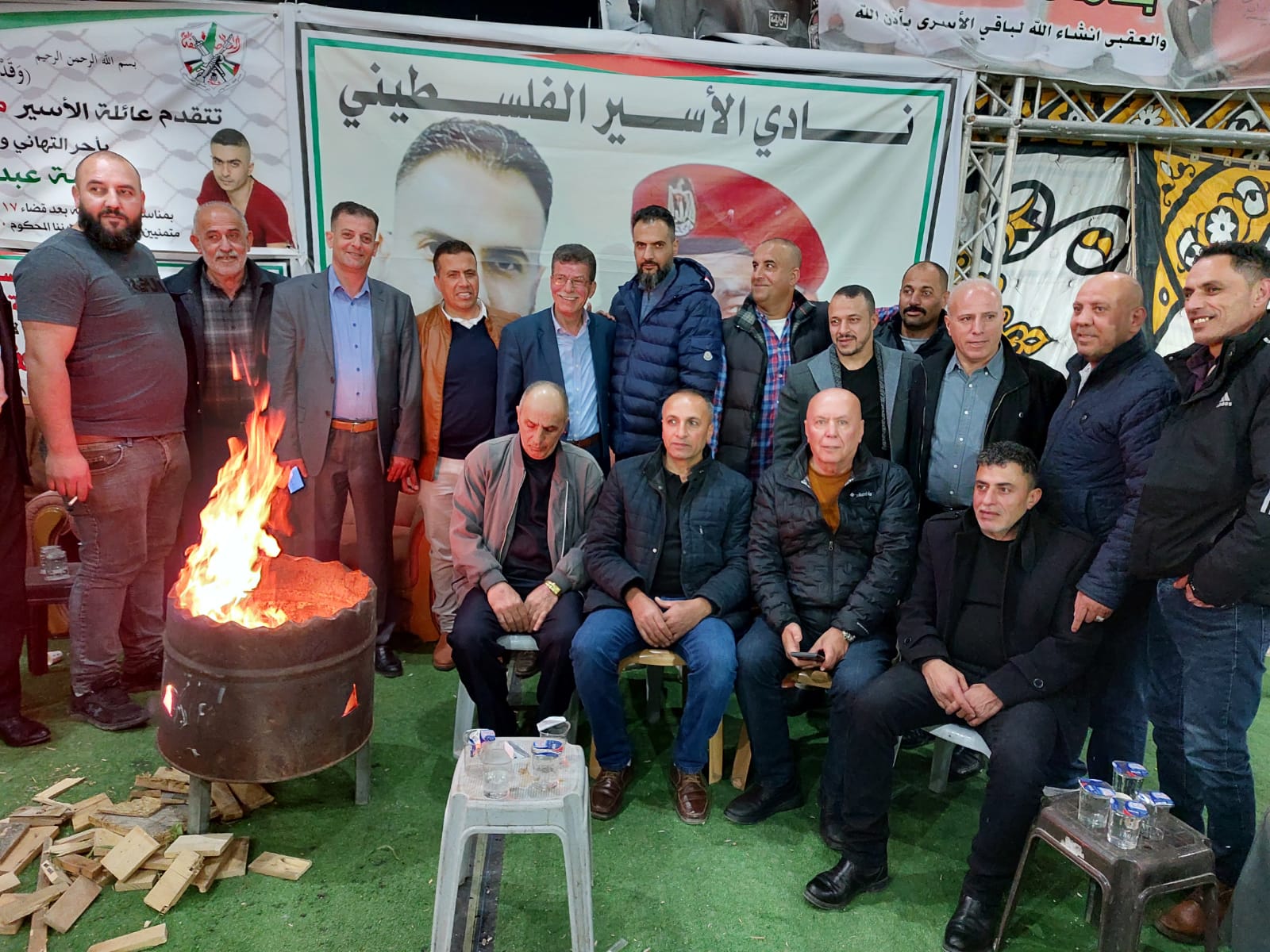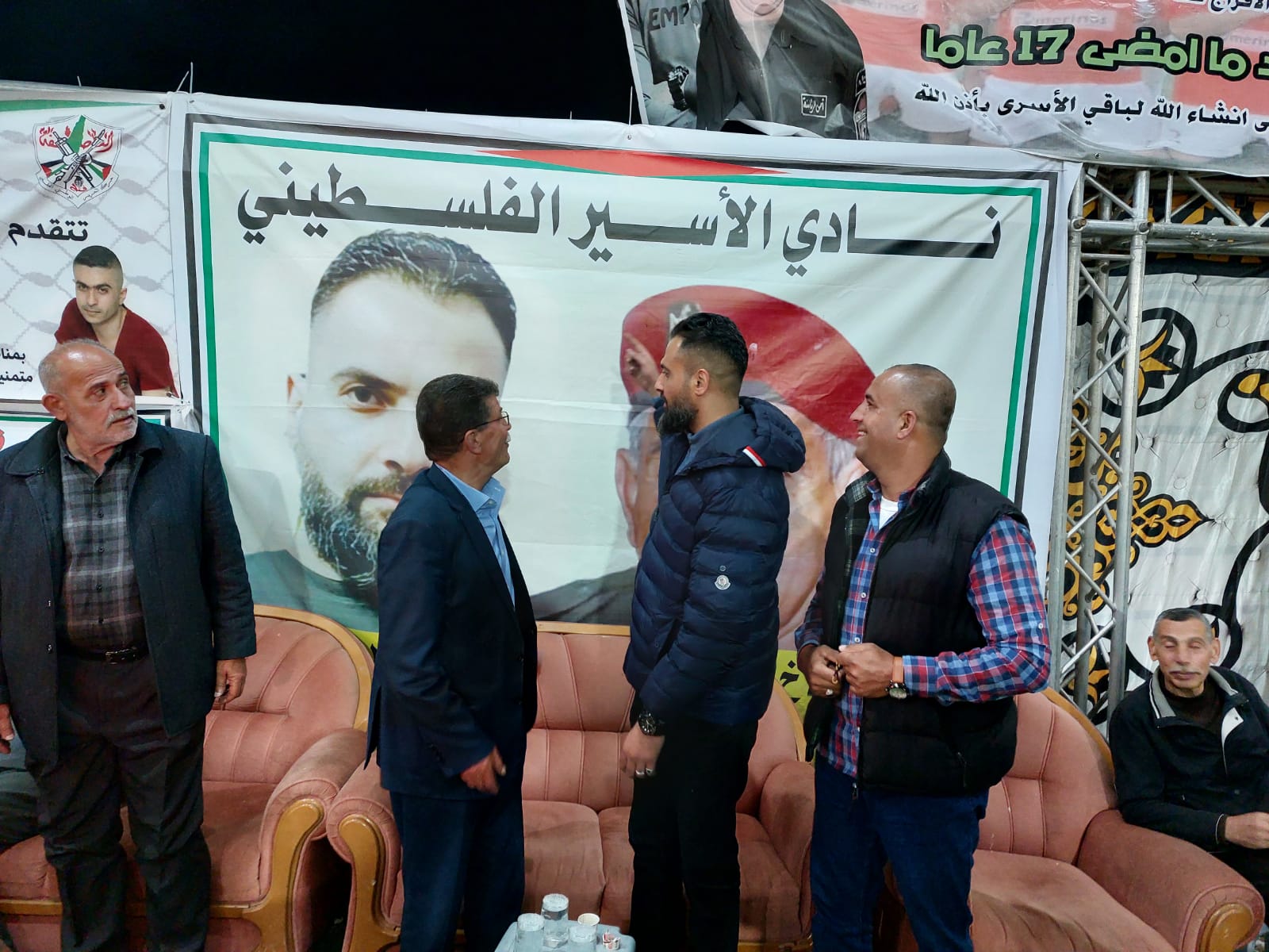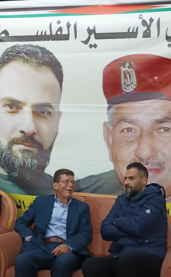 قدورة فارس رئيس نادي الاسير الفلسطيني على رأس وفد من نادي الأسير الفلسطيني في محافظة الخليل يقدمان التهاني والتبريكات للأسير المحرر أسامة عبد الله مناصرة السلال بمناسبة تحرره من سجون الاحتلال بعد اعتقال استمر 17 عام قضاها في سجون الاحتلال