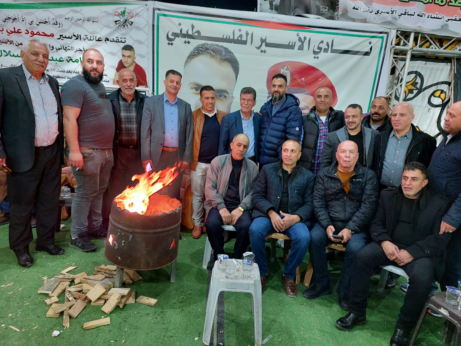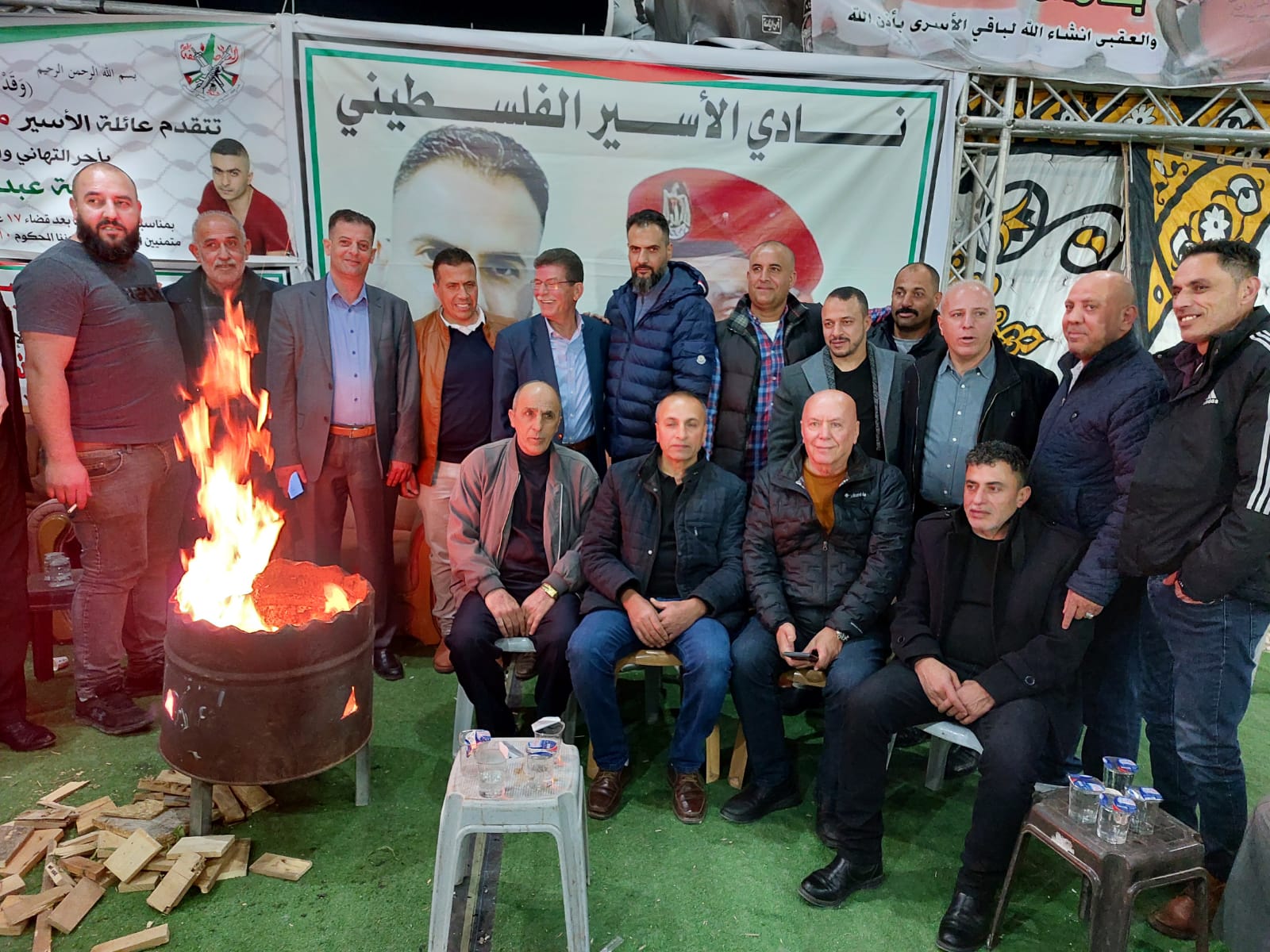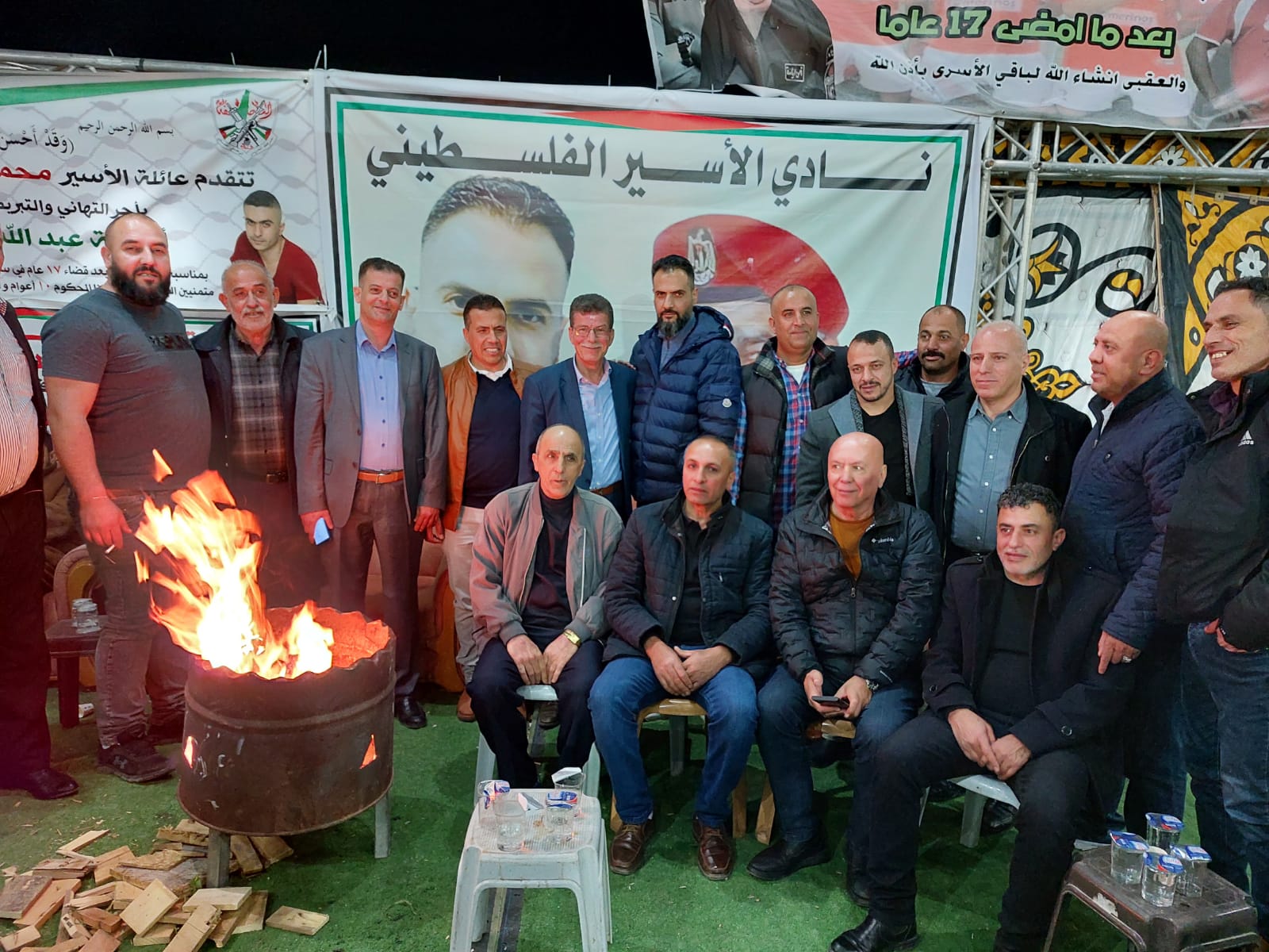 قدورة فارس رئيس نادي الاسير الفلسطيني على رأس وفد من نادي الأسير الفلسطيني في محافظة الخليل يقدمان التهاني والتبريكات للأسير المحرر أسامة عبد الله مناصرة السلال بمناسبة تحرره من سجون الاحتلال بعد اعتقال استمر 17 عام قضاها في سجون الاحتلال
