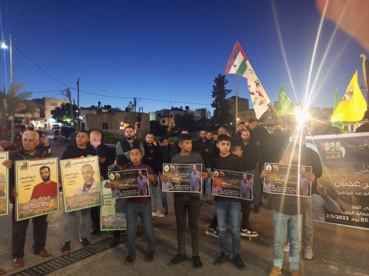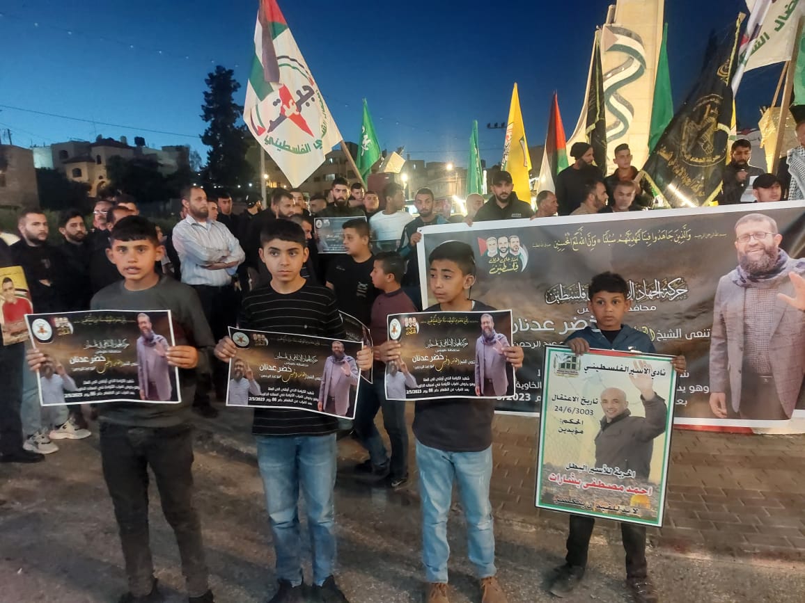 طوباس 2-5-2023 وفا- شاركت جماهير شعبنا في محافظة طوباس والأغوار الشمالية، مساء اليوم الثلاثاء، في وقفة تنديدا باغتيال الشهيد الأسير خضر عدنان.