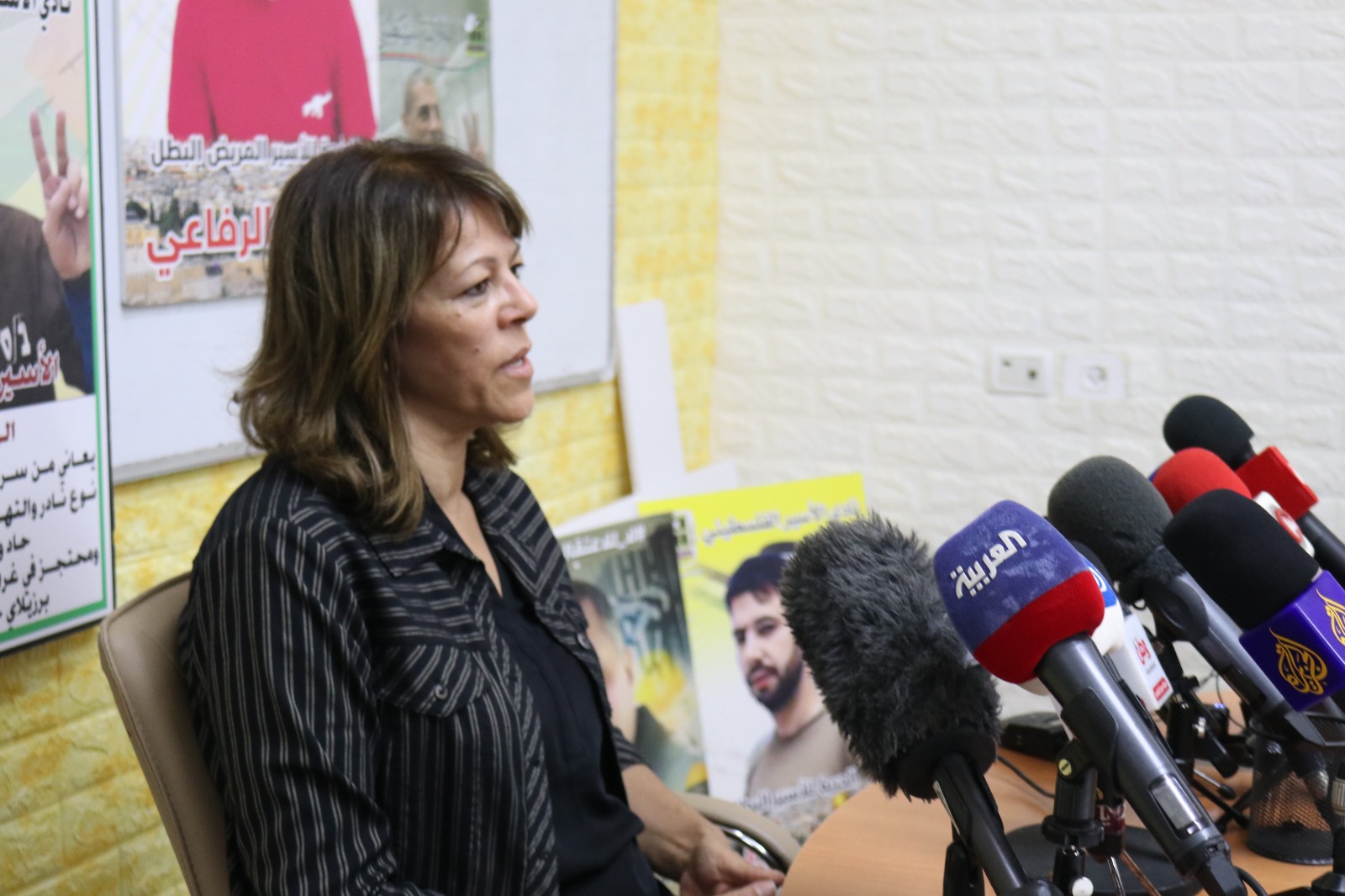 من اللقاء الصحفي الذي نظمه نادي الأسير، بحضور زوجة الأسير القائد وليد دقة، وذلك حول مستجدات الوضع الصحي له والمسار القانوني الذي بدأت به عائلته