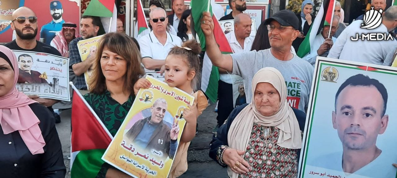 مؤسسات الأسرى تنظم وقفة دعم وإسناد للأسير وليد دقة وكافة الأسرى المرضى في سجون الاحتلال في بيت لحم بمشاركة زوجته وابنته.
