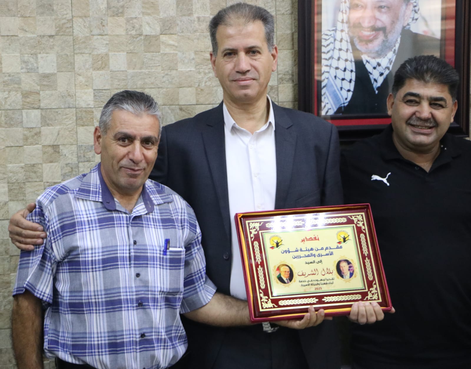 محافظـة الخليـل ومـؤسساتها تقيم حفل تكريم للأخ بـلال الشــريف مســـؤول الاعــلام فــي الصليب الأحمر الدولي في جنوب الضفة