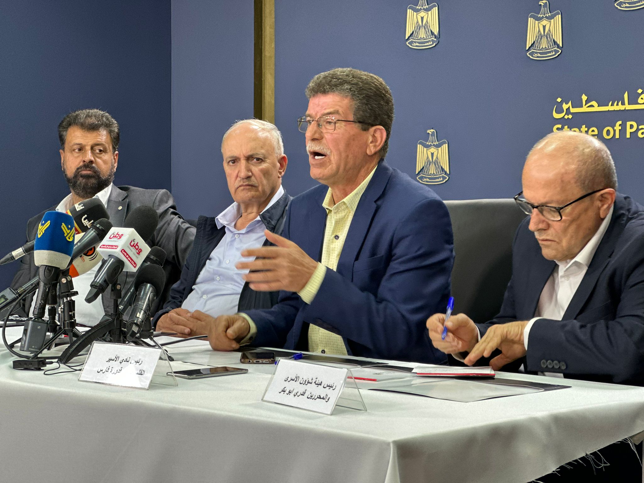 جاء ذلك خلال مؤتمر صحفي عقد صباح اليوم الخميس بدعوة من مؤسسات الأسرى والقوى، في مقر قاعة المؤتمرات/ وزارة الإعلام في رام الله، شارك فيه عضو اللجنة التنفيذية لمنظمة التحرير د. واصل ابو يوسف، ورئيس هيئة شؤون الأسرى والمحررين اللواء قدري ابو بكر، ورئيس نادي الأسير الفلسطيني قدورة فارس، ورئيس الهيئة العليا لمتابعة شؤون الأسرى والمحررين أمين شومان.