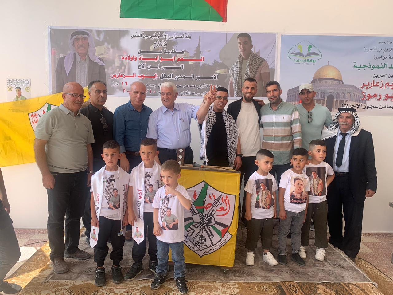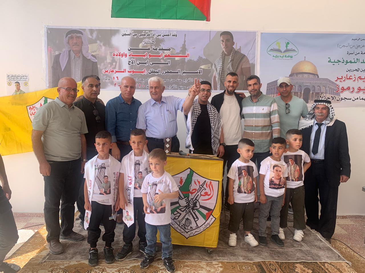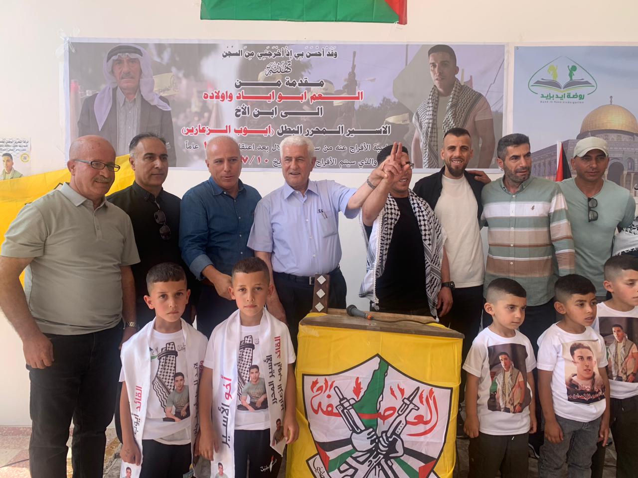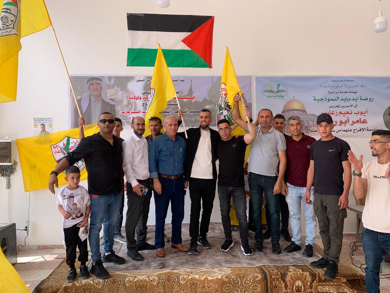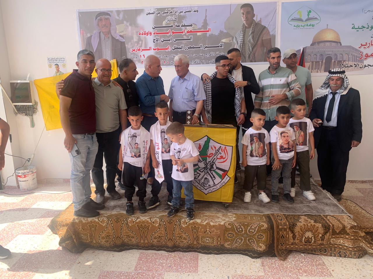 جانب من استقبال نادي الأسير الفلسطيني في الخليل للأسيرين المحررين عامر ابو رموز وأيوب الزعارير بعد اعتقال دام 16 عام في سجون الاحتلال