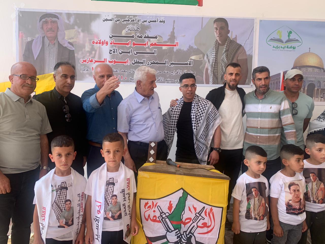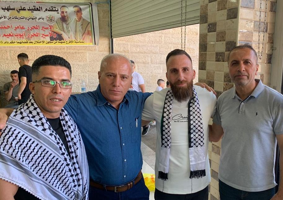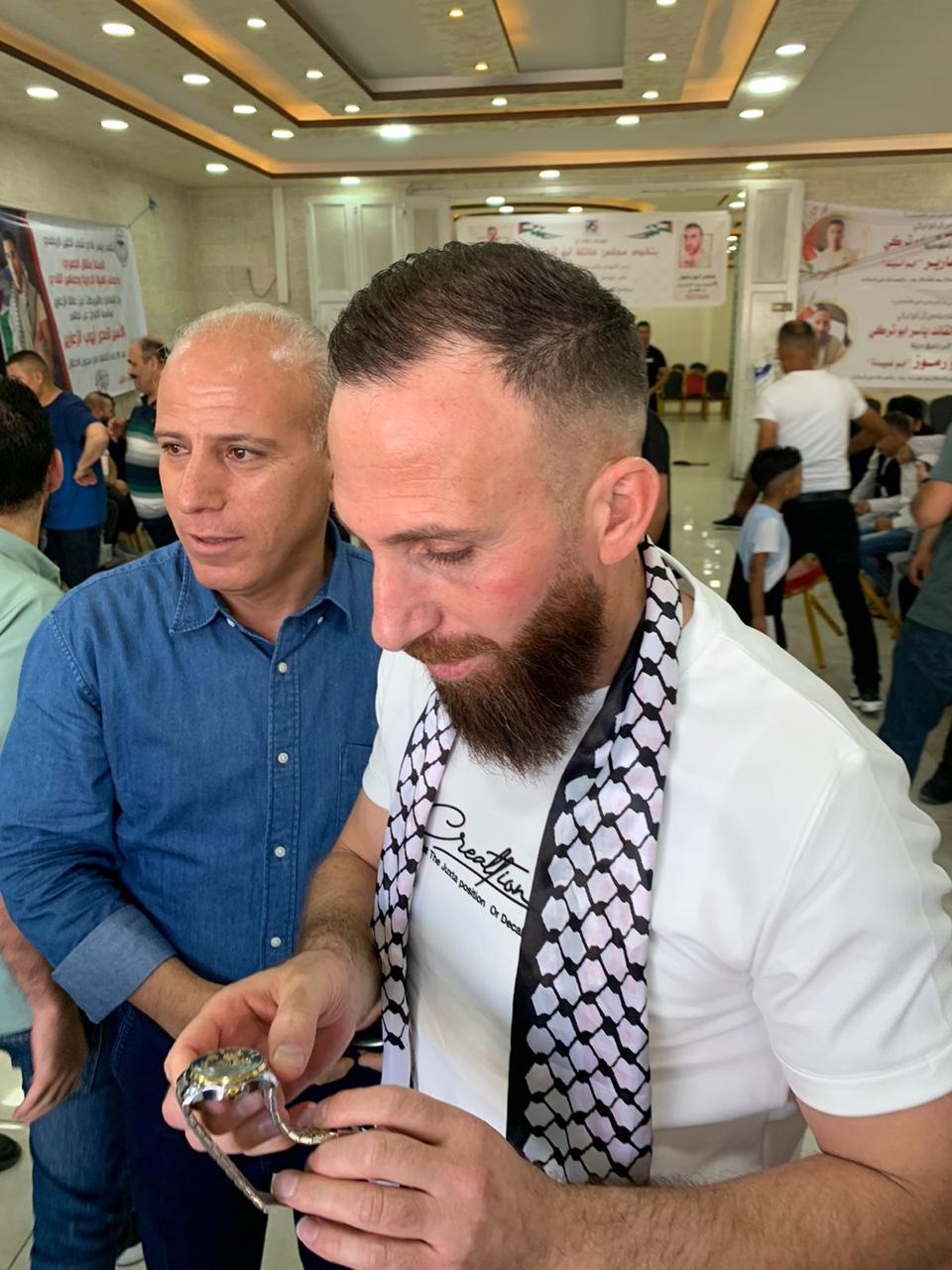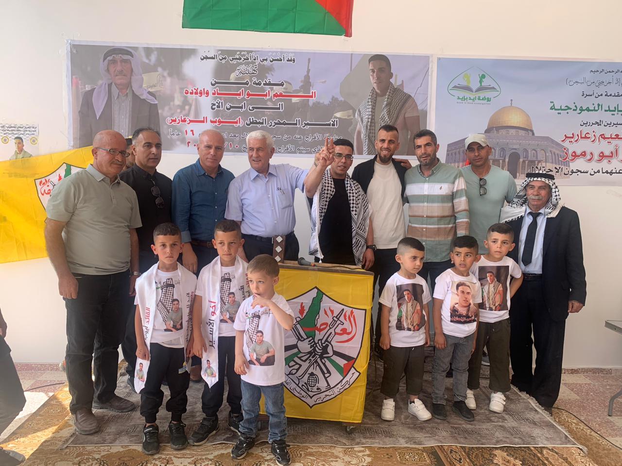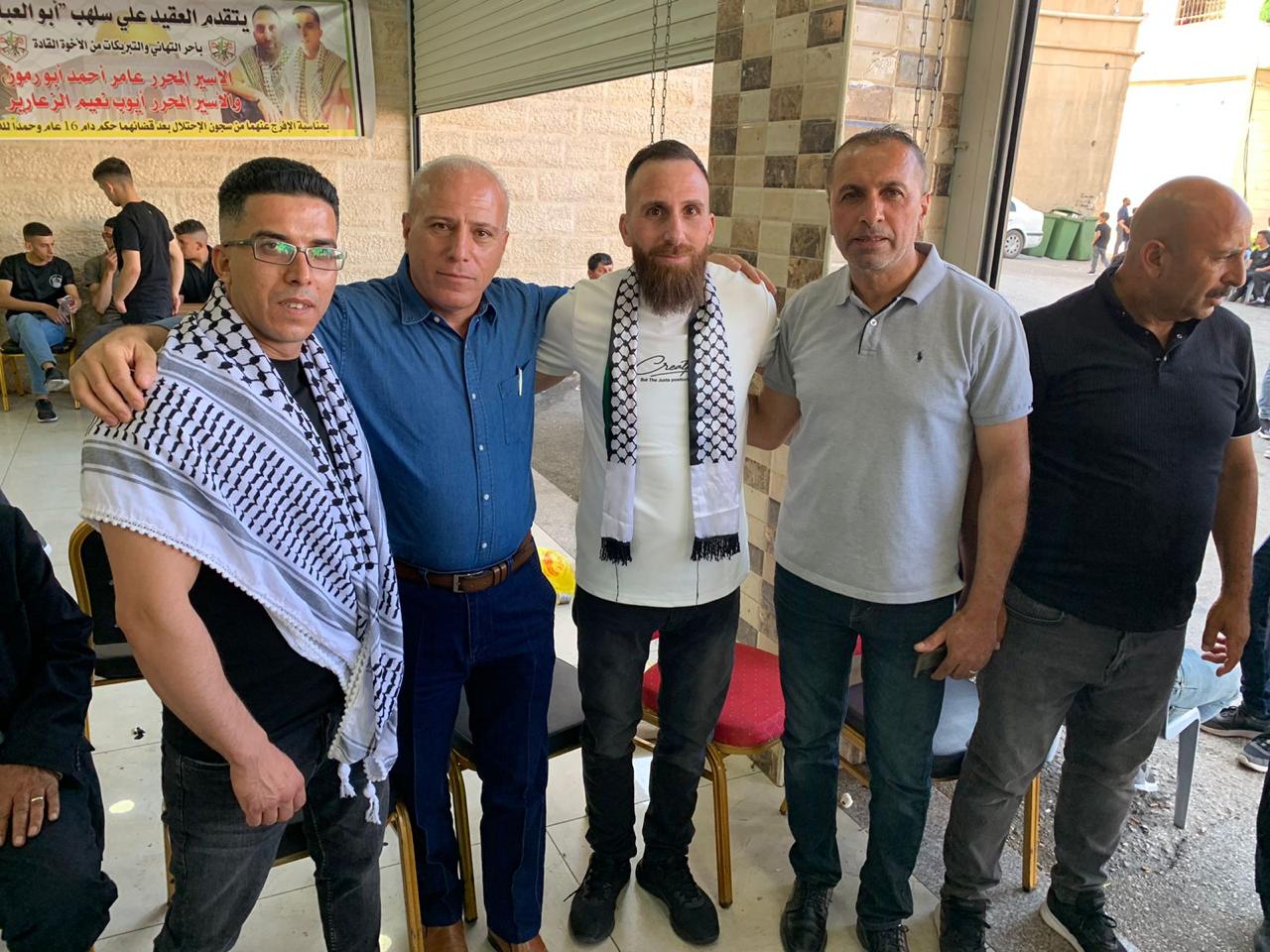 جانب من استقبال نادي الأسير الفلسطيني في الخليل للأسيرين المحررين عامر ابو رموز وأيوب الزعارير بعد اعتقال دام 16 عام في سجون الاحتلال