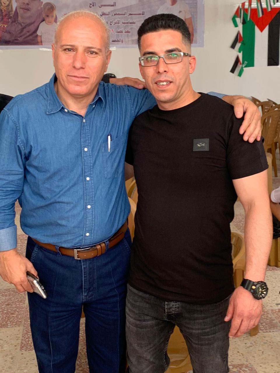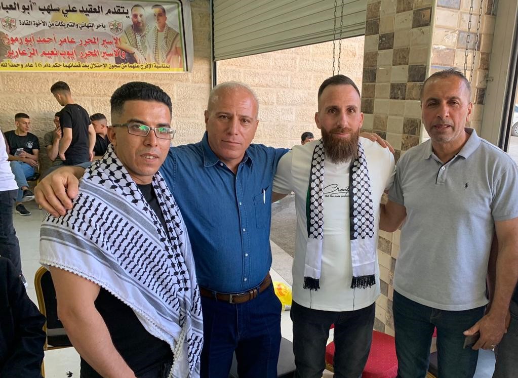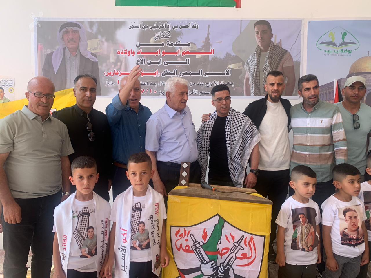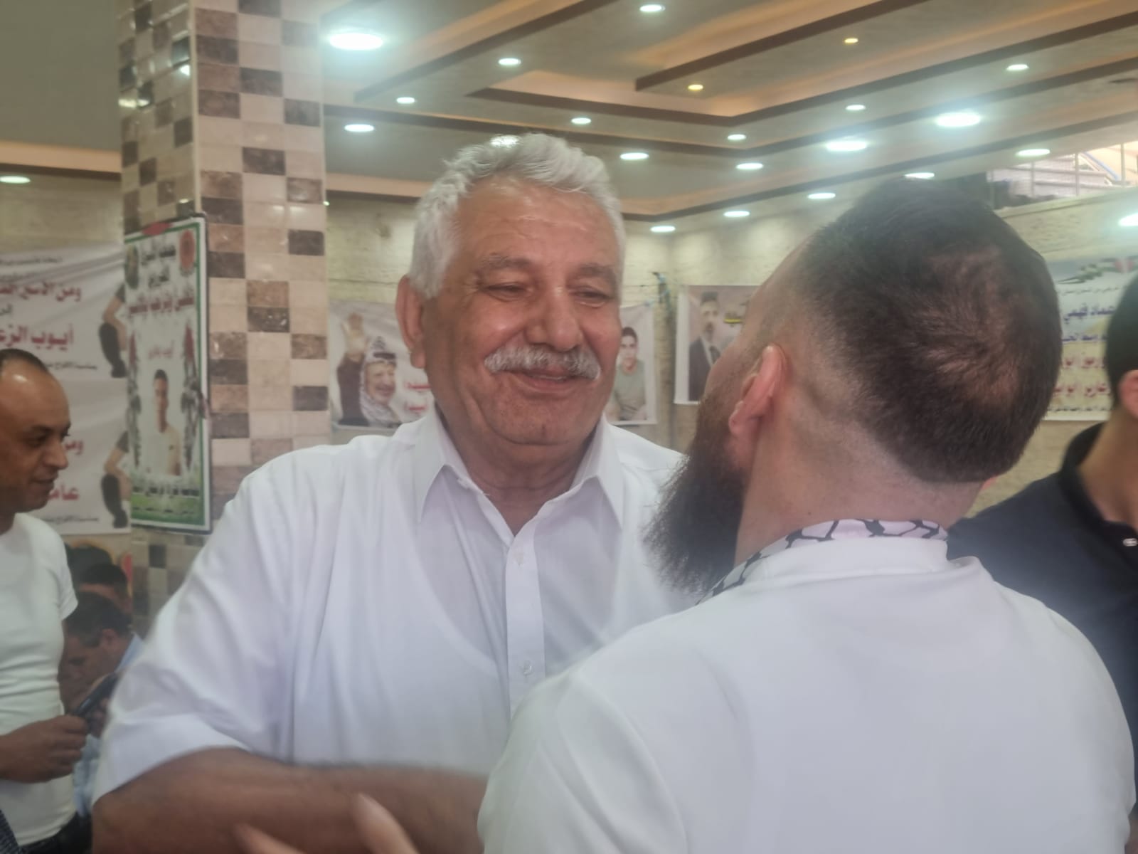 جانب من استقبال نادي الأسير الفلسطيني في الخليل للأسيرين المحررين عامر ابو رموز وأيوب الزعارير بعد اعتقال دام 16 عام في سجون الاحتلال