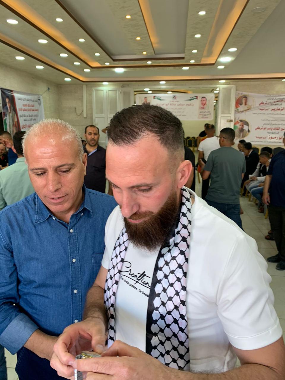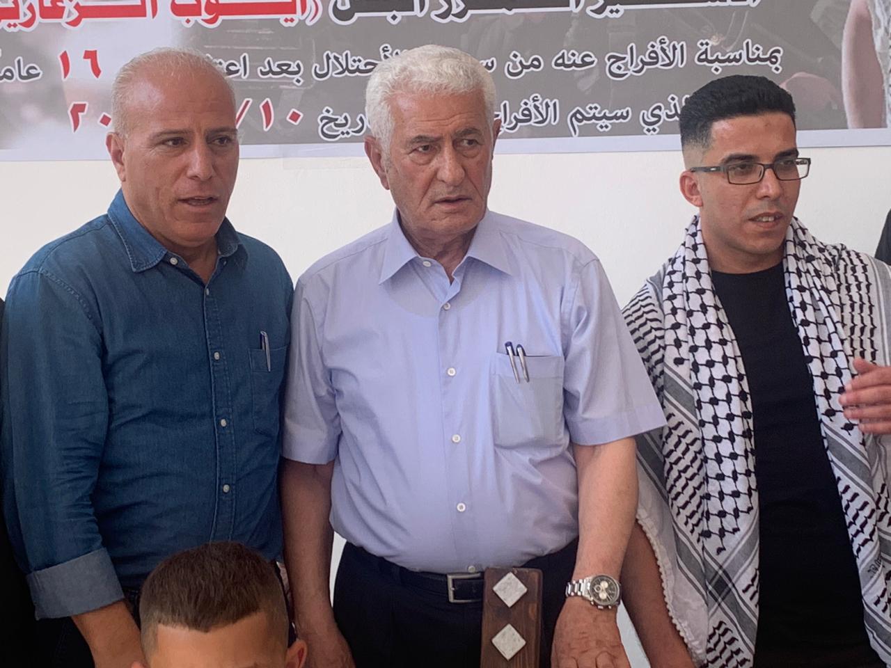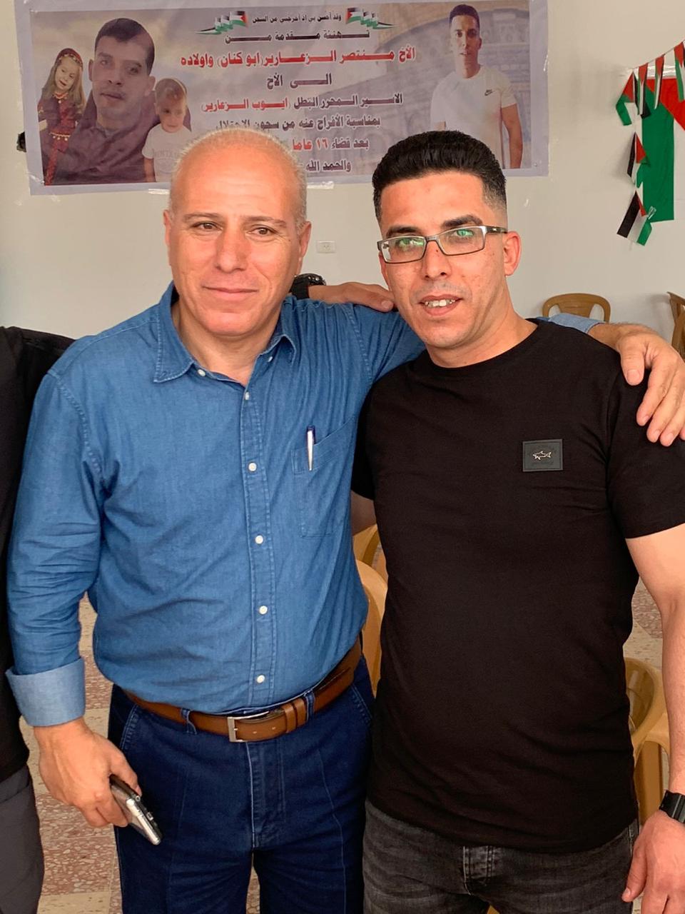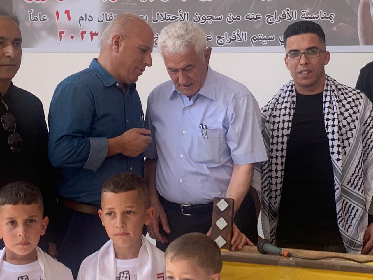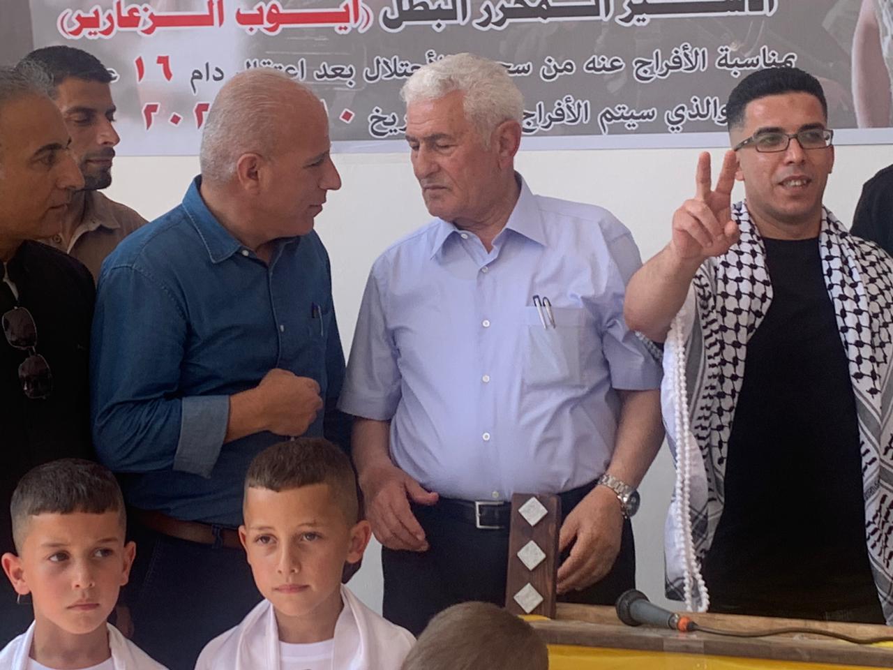جانب من استقبال نادي الأسير الفلسطيني في الخليل للأسيرين المحررين عامر ابو رموز وأيوب الزعارير بعد اعتقال دام 16 عام في سجون الاحتلال
