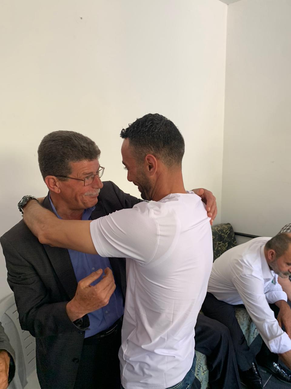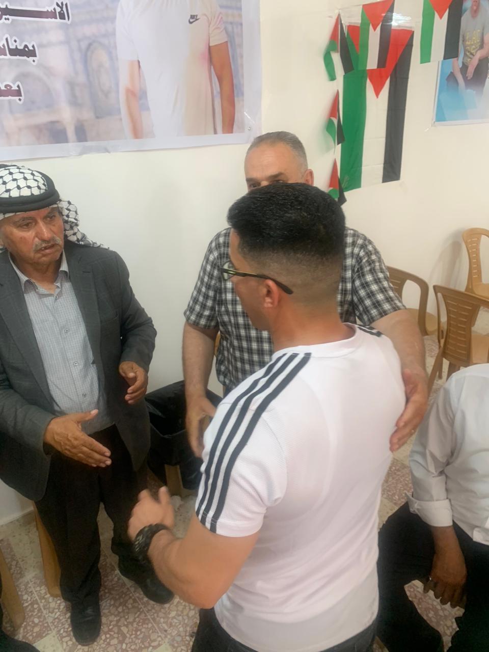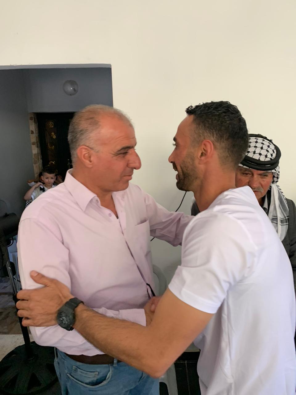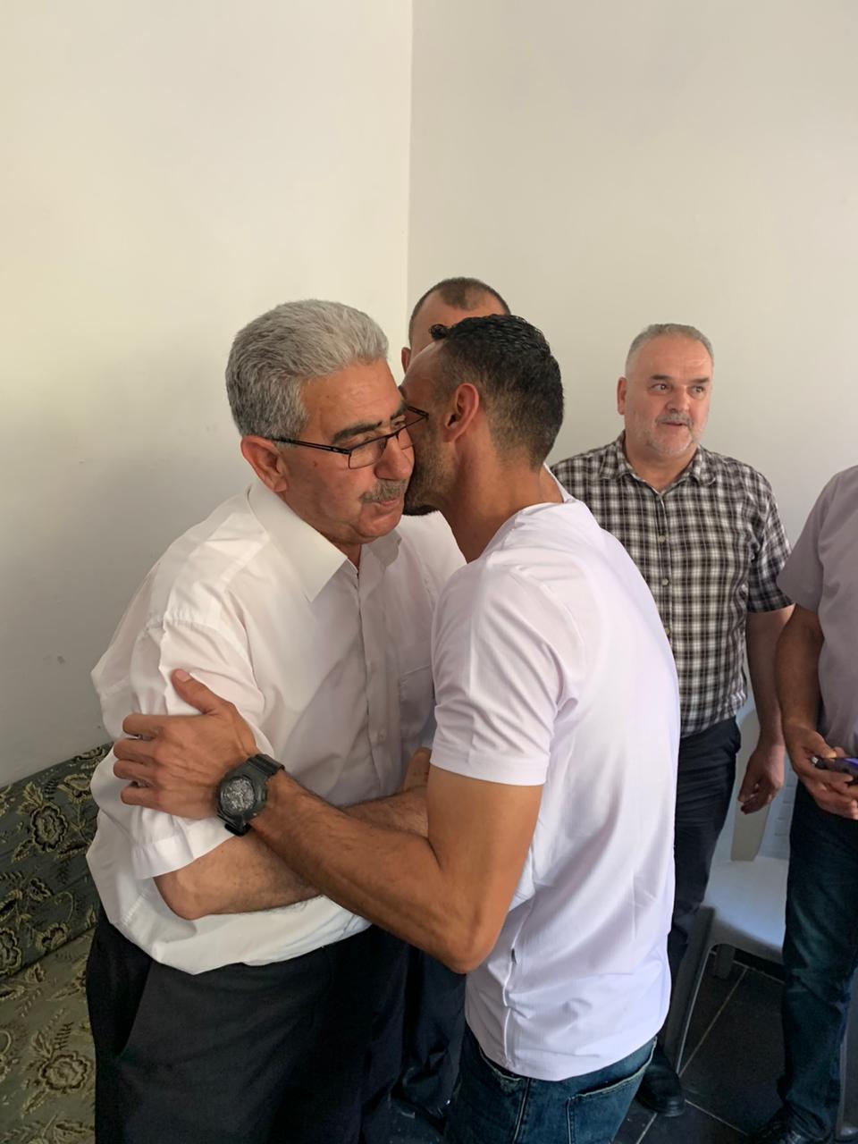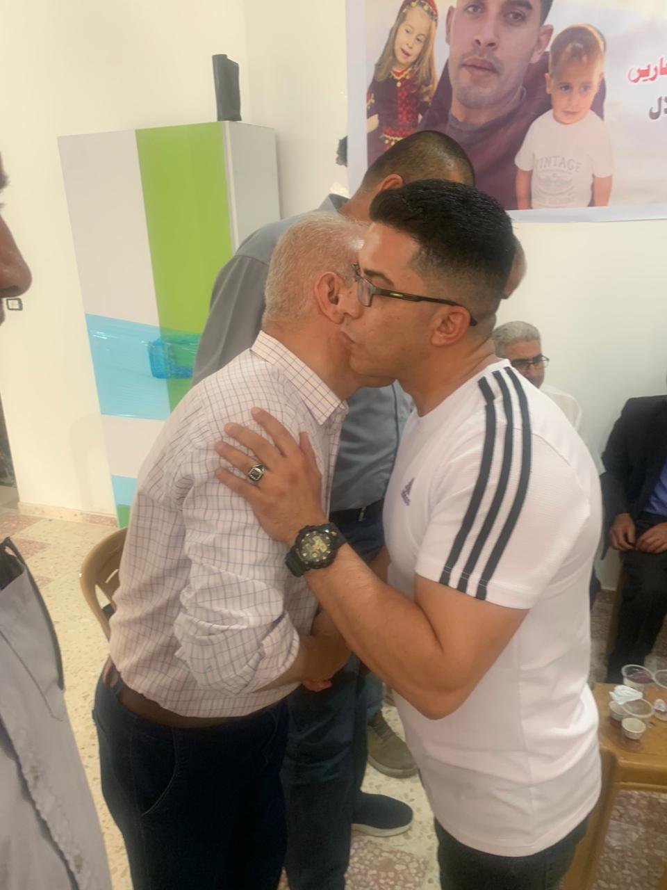 قدورة فارس رئيس نادي الأسير الفلسطيني على رأس وفد من نادي الأسير الفلسطيني وكادر من الاسرى المحررين وبمشاركة وفد من هيئة التوجيه السياسي والوطني يقدمان التهاني للأسرى المحررين ( رامي حسان وعامر أبو رموز وايوب الزعارير ) بمناسبة تحررهم من سجون الاحتلال ...