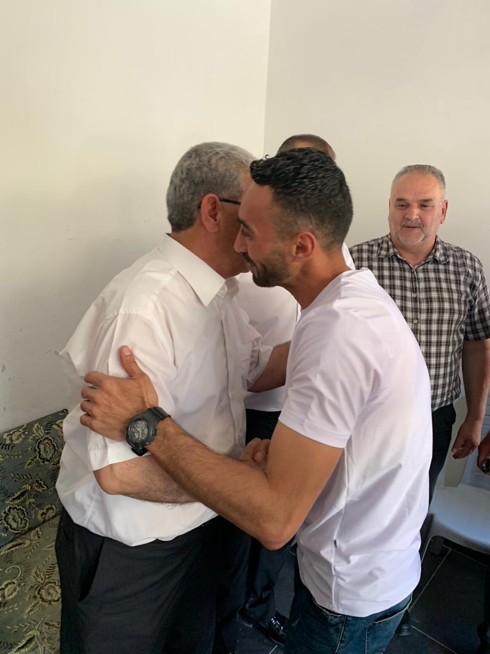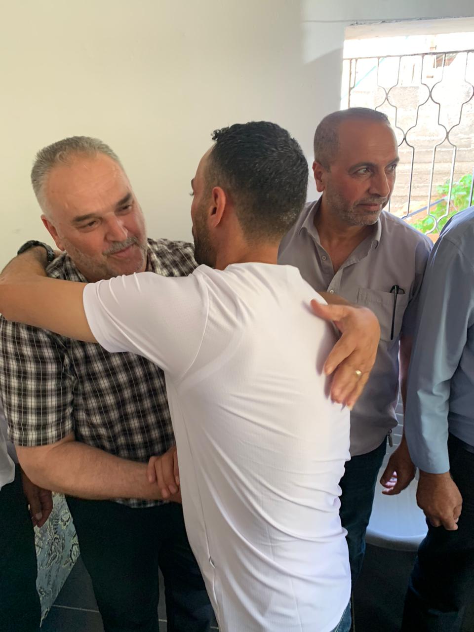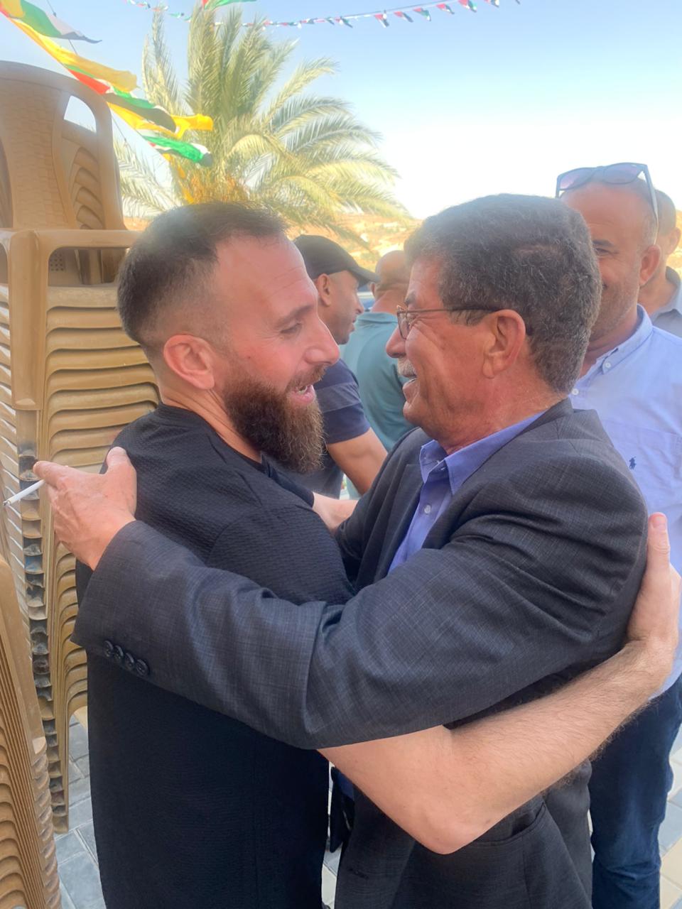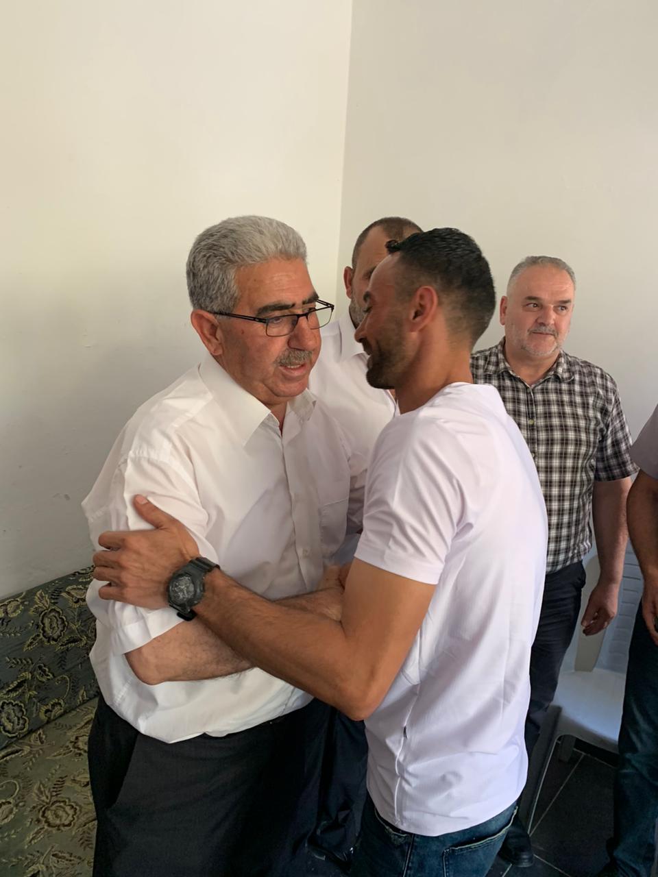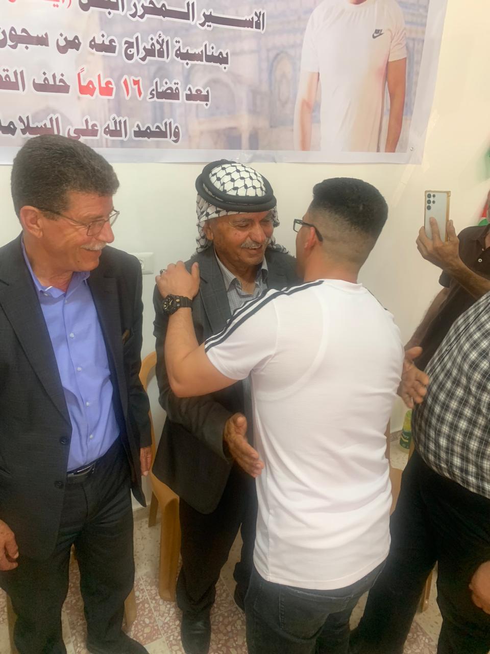 قدورة فارس رئيس نادي الأسير الفلسطيني على رأس وفد من نادي الأسير الفلسطيني وكادر من الاسرى المحررين وبمشاركة وفد من هيئة التوجيه السياسي والوطني يقدمان التهاني للأسرى المحررين ( رامي حسان وعامر أبو رموز وايوب الزعارير ) بمناسبة تحررهم من سجون الاحتلال ...