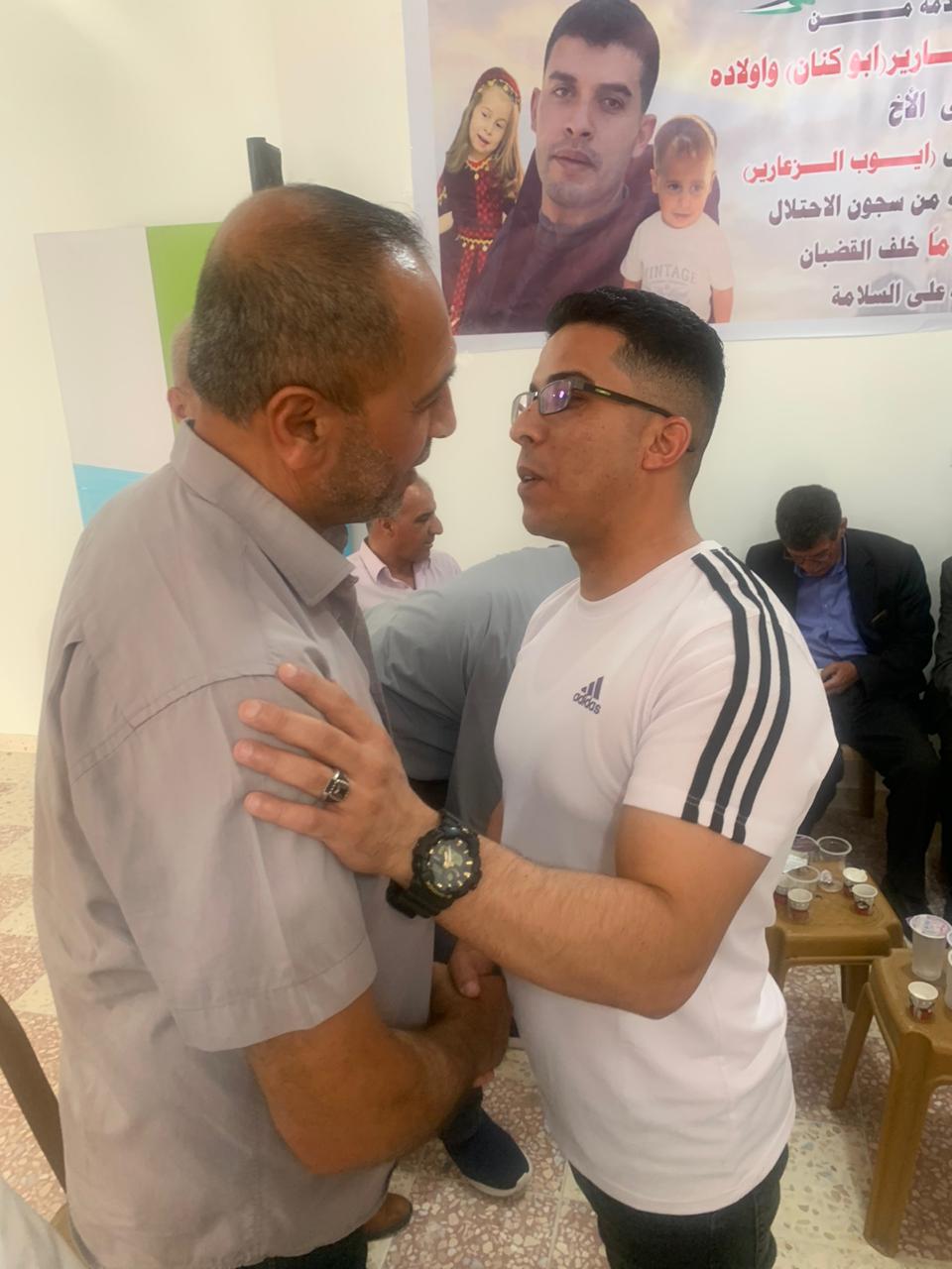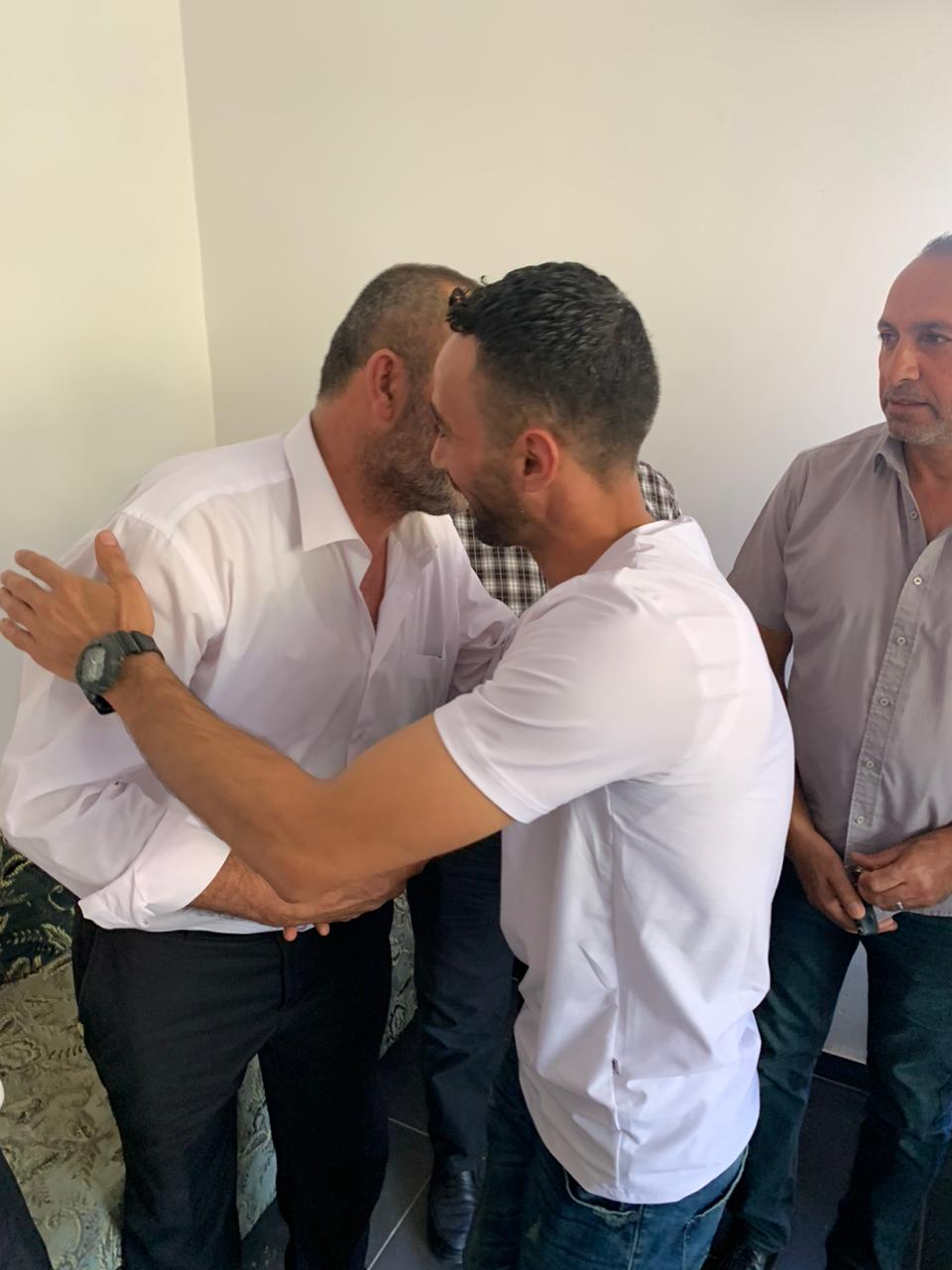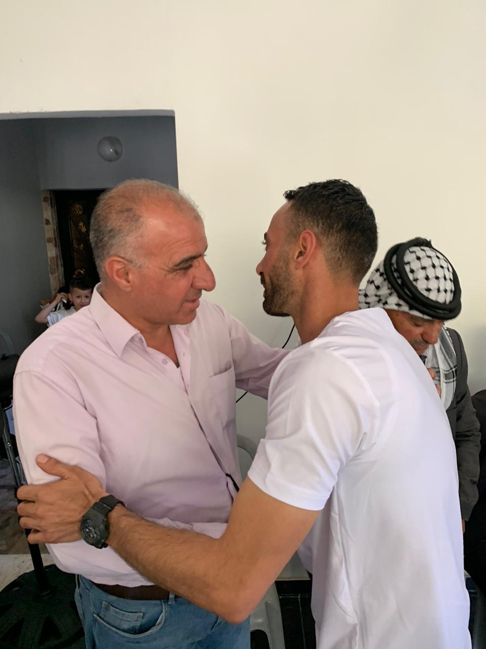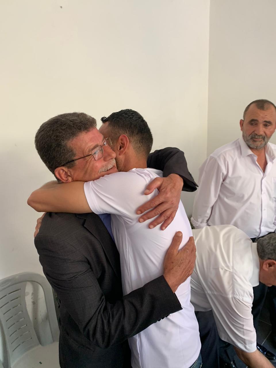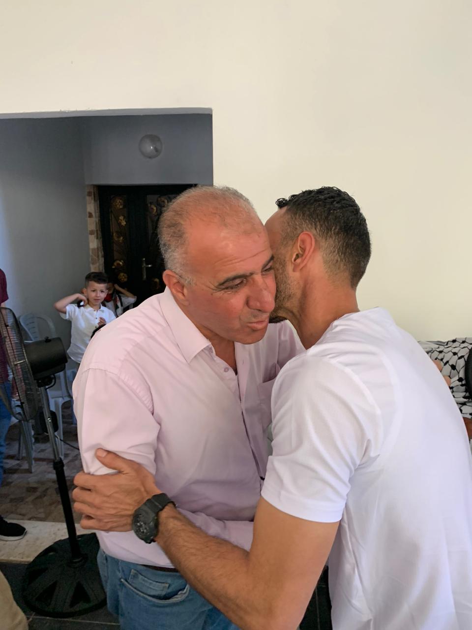 قدورة فارس رئيس نادي الأسير الفلسطيني على رأس وفد من نادي الأسير الفلسطيني وكادر من الاسرى المحررين وبمشاركة وفد من هيئة التوجيه السياسي والوطني يقدمان التهاني للأسرى المحررين ( رامي حسان وعامر أبو رموز وايوب الزعارير ) بمناسبة تحررهم من سجون الاحتلال ...