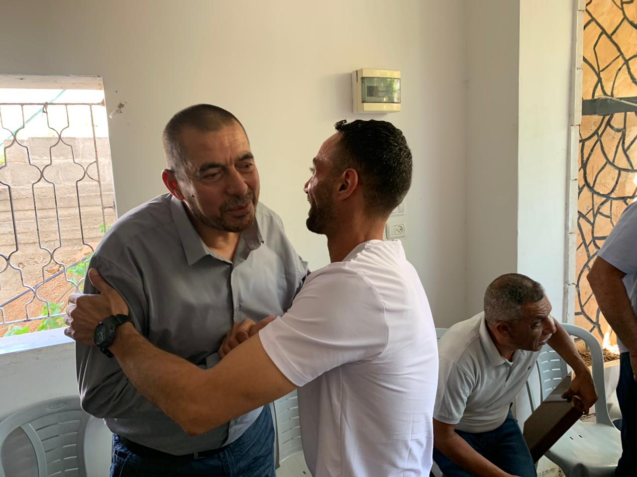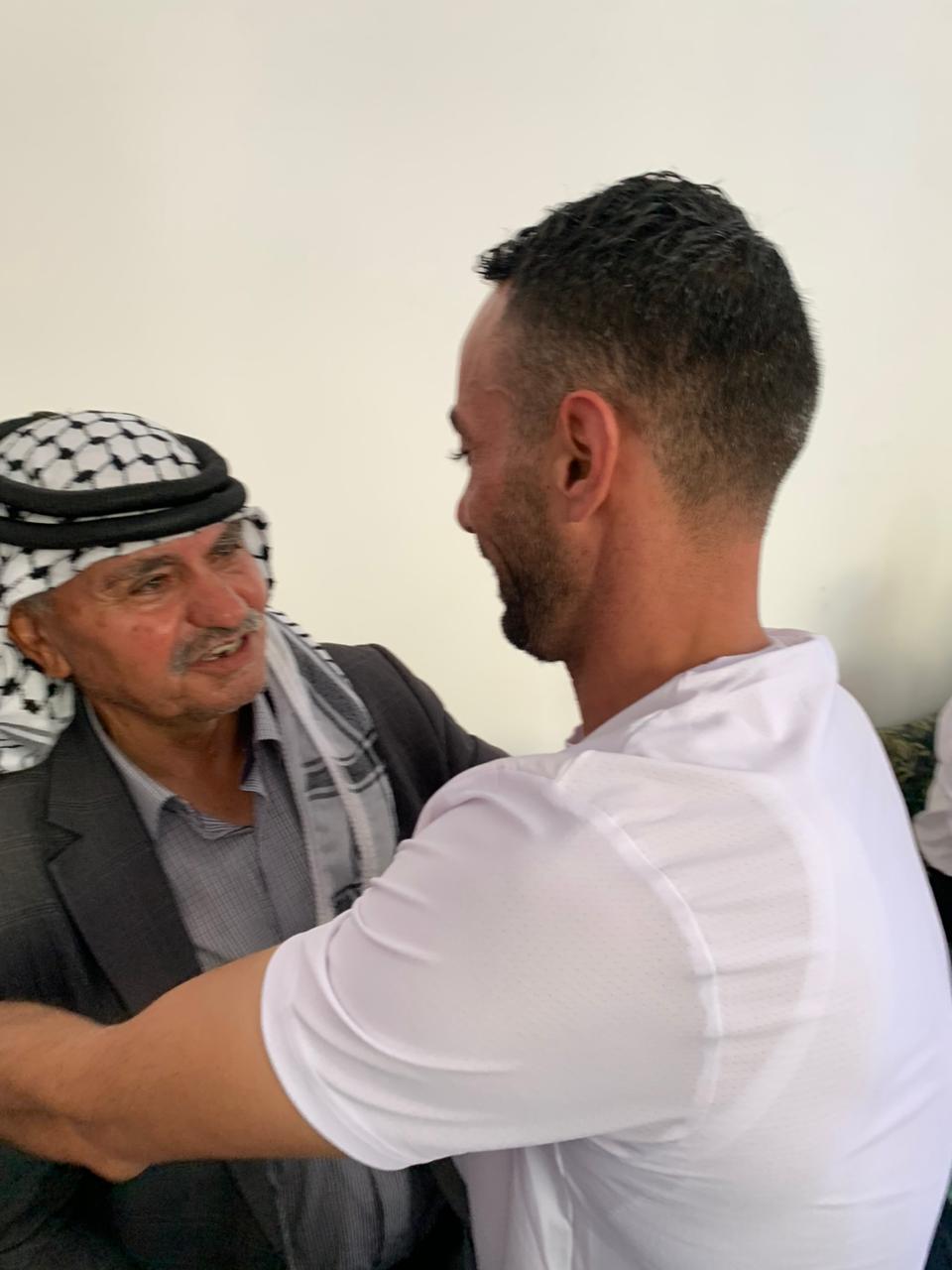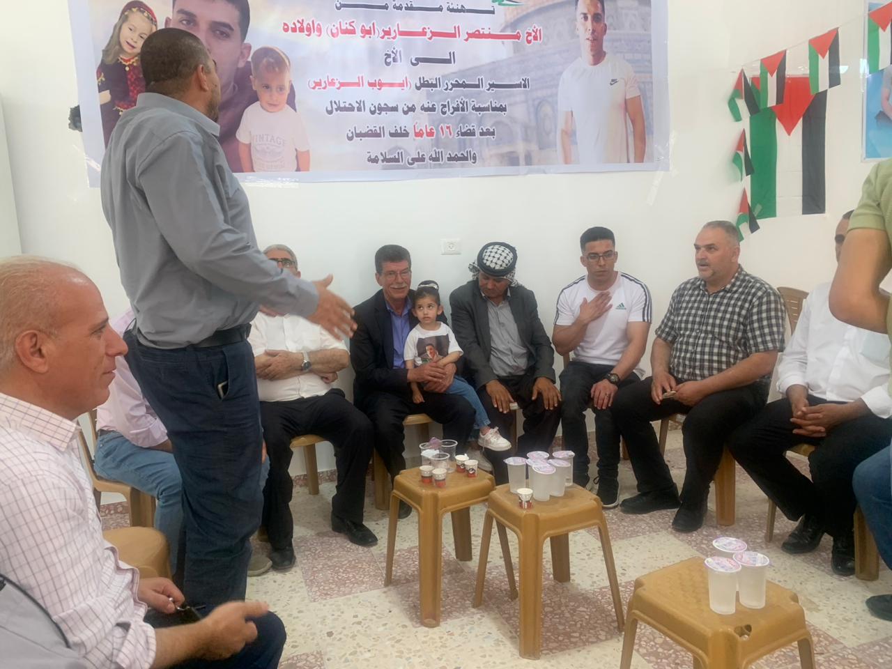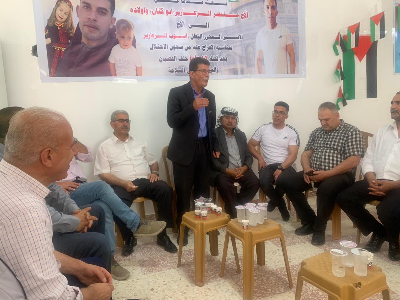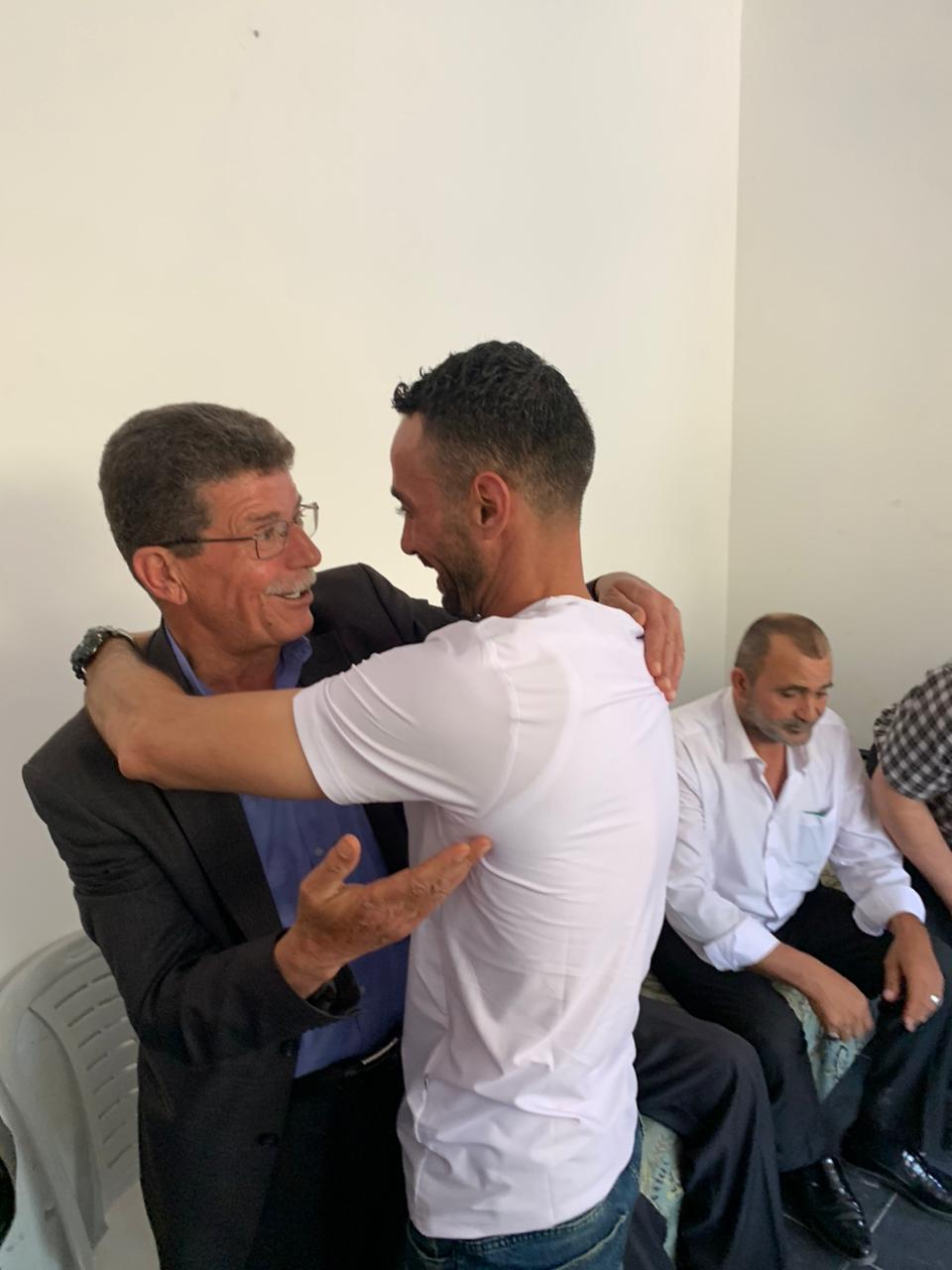 قدورة فارس رئيس نادي الأسير الفلسطيني على رأس وفد من نادي الأسير الفلسطيني وكادر من الاسرى المحررين وبمشاركة وفد من هيئة التوجيه السياسي والوطني يقدمان التهاني للأسرى المحررين ( رامي حسان وعامر أبو رموز وايوب الزعارير ) بمناسبة تحررهم من سجون الاحتلال ...