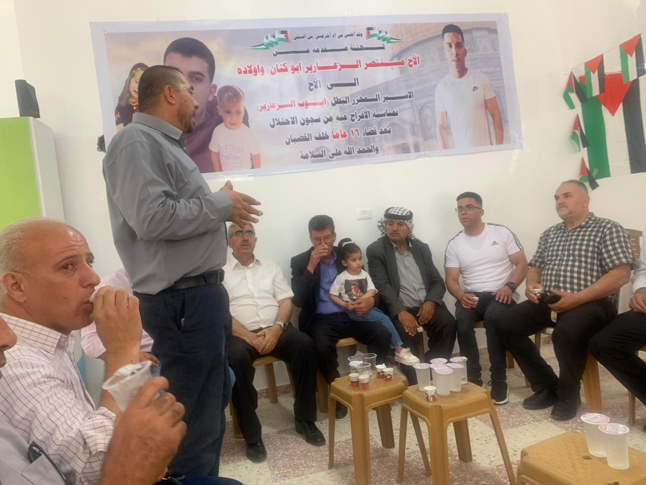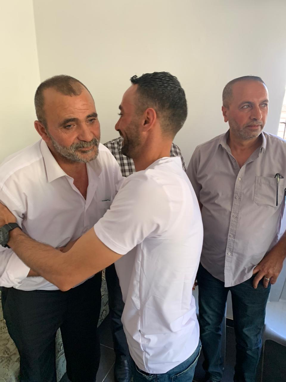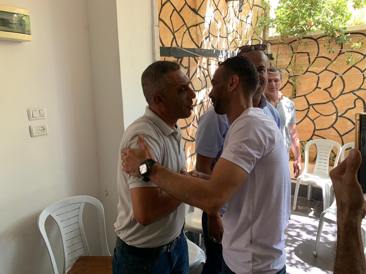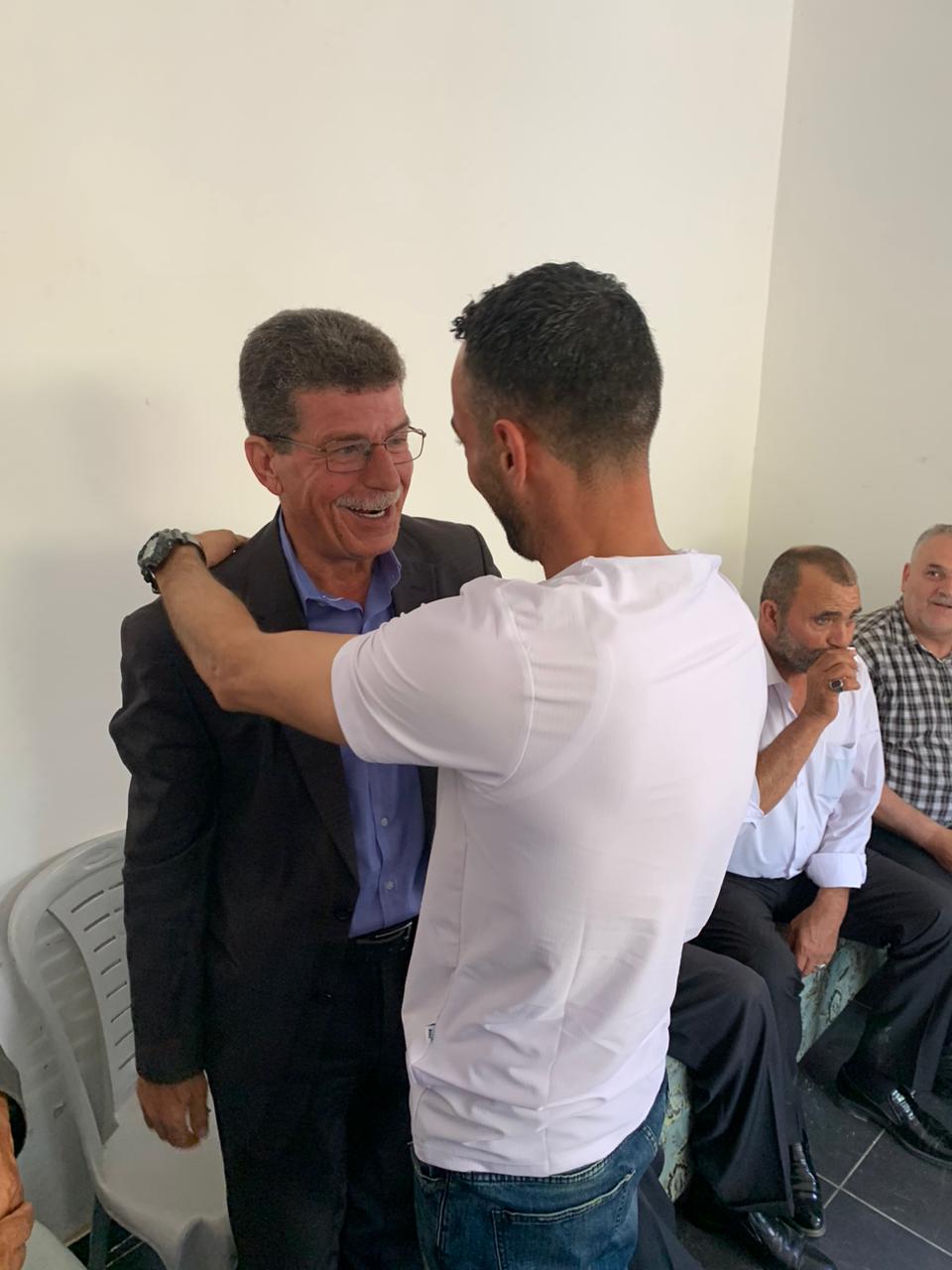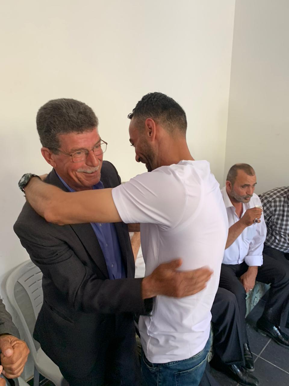 قدورة فارس رئيس نادي الأسير الفلسطيني على رأس وفد من نادي الأسير الفلسطيني وكادر من الاسرى المحررين وبمشاركة وفد من هيئة التوجيه السياسي والوطني يقدمان التهاني للأسرى المحررين ( رامي حسان وعامر أبو رموز وايوب الزعارير ) بمناسبة تحررهم من سجون الاحتلال ...