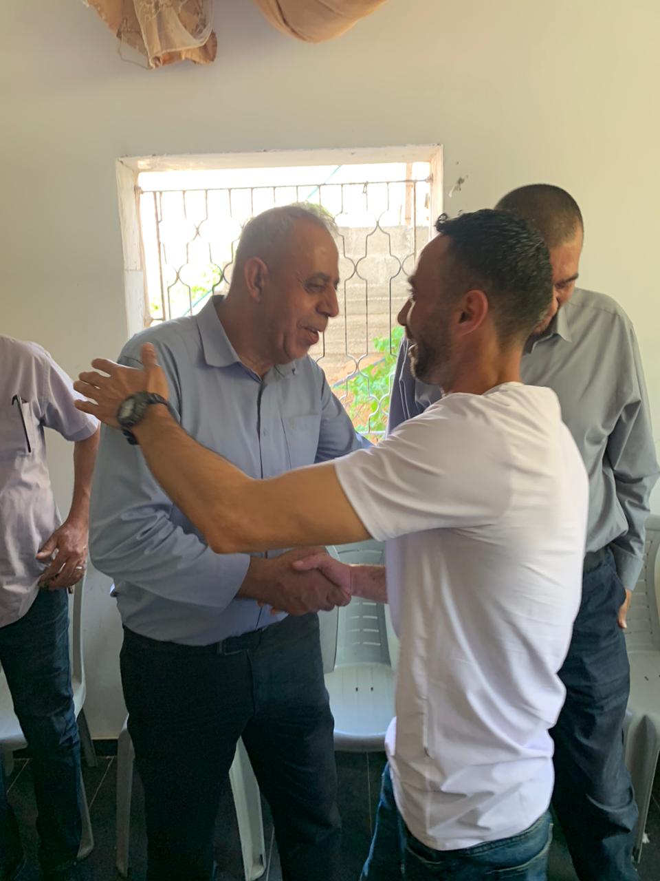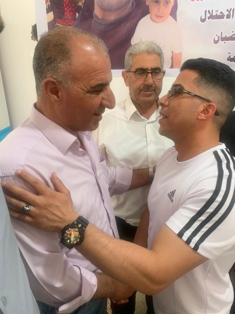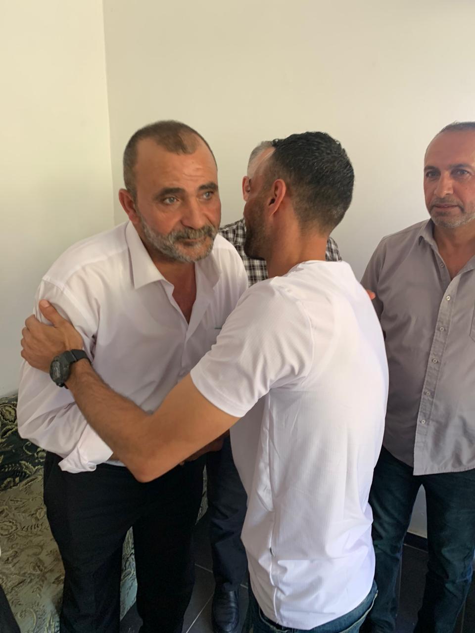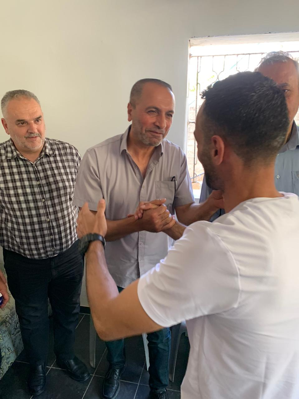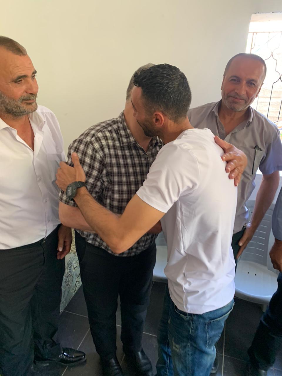 قدورة فارس رئيس نادي الأسير الفلسطيني على رأس وفد من نادي الأسير الفلسطيني وكادر من الاسرى المحررين وبمشاركة وفد من هيئة التوجيه السياسي والوطني يقدمان التهاني للأسرى المحررين ( رامي حسان وعامر أبو رموز وايوب الزعارير ) بمناسبة تحررهم من سجون الاحتلال ...